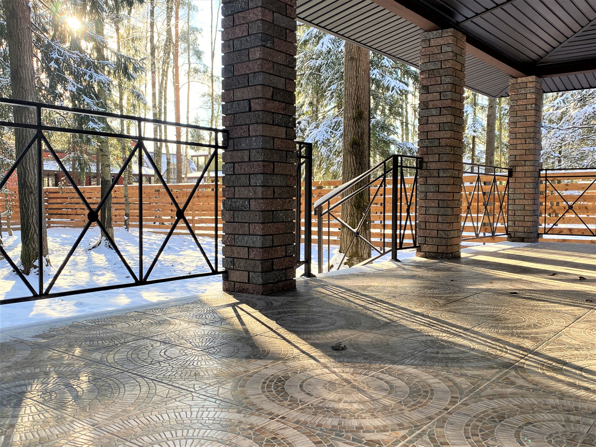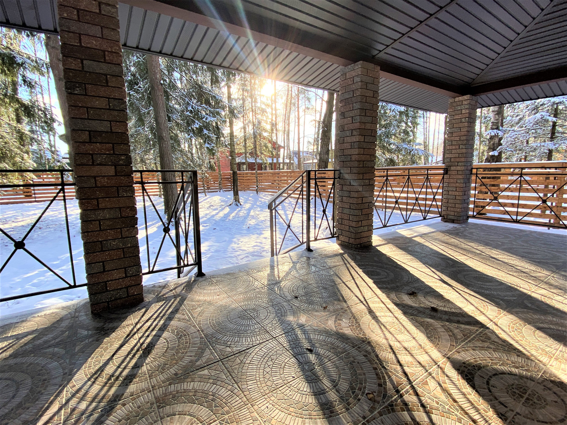 — Забор по периметру участка, установлены распашные ворота;