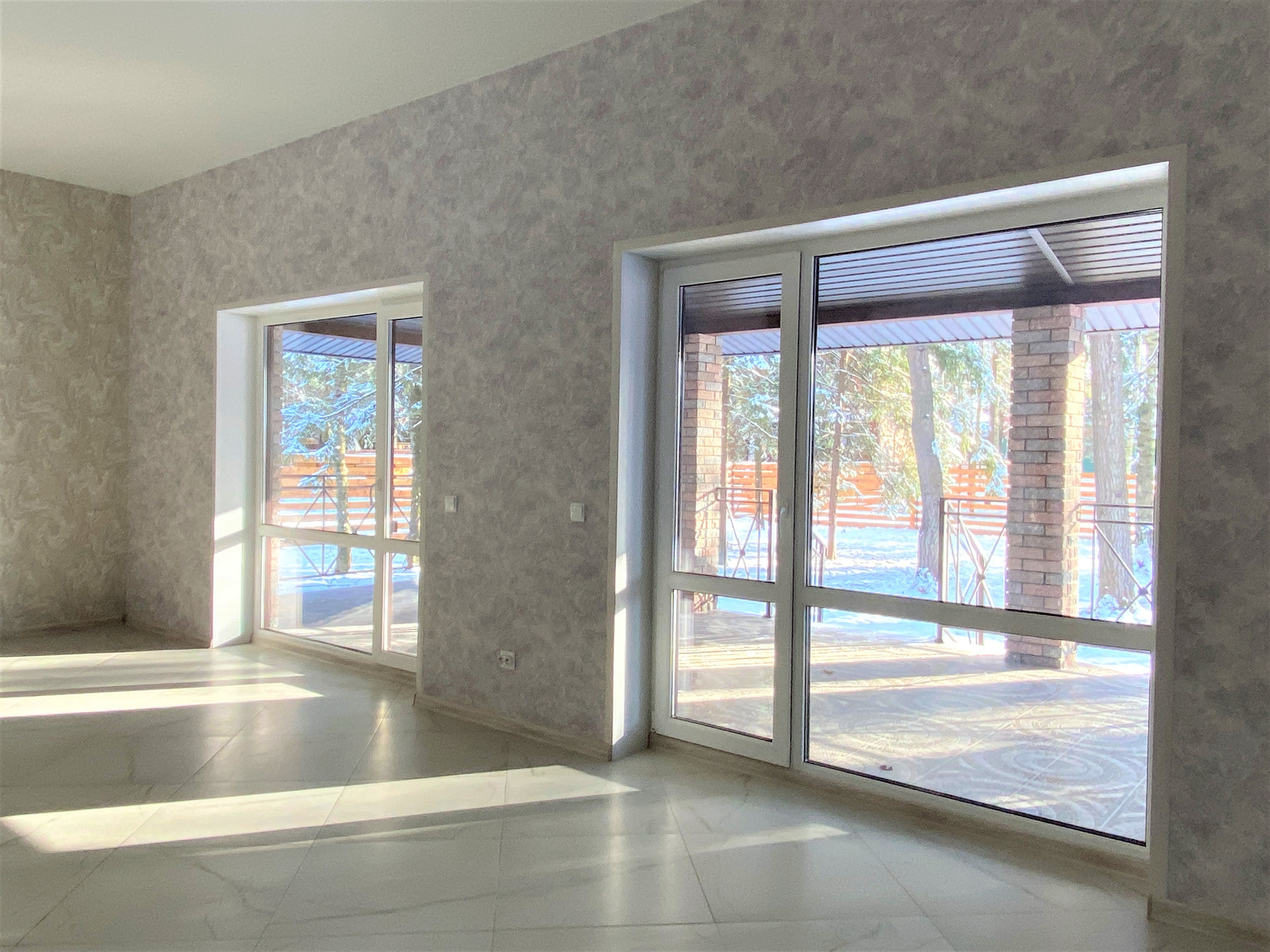 — Смонтированы натяжные потолки на первом этаже;