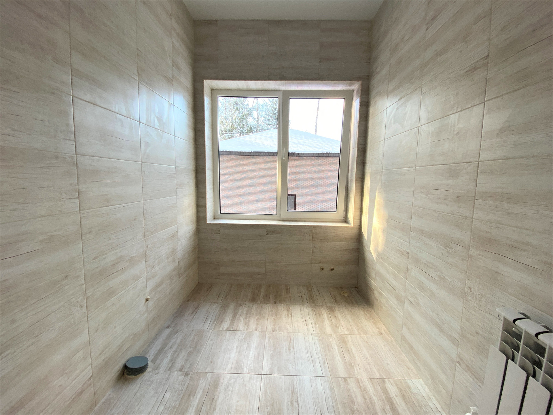 — Уложен керамогранит в санузлах, установлена сантехника на 1-м этаже;