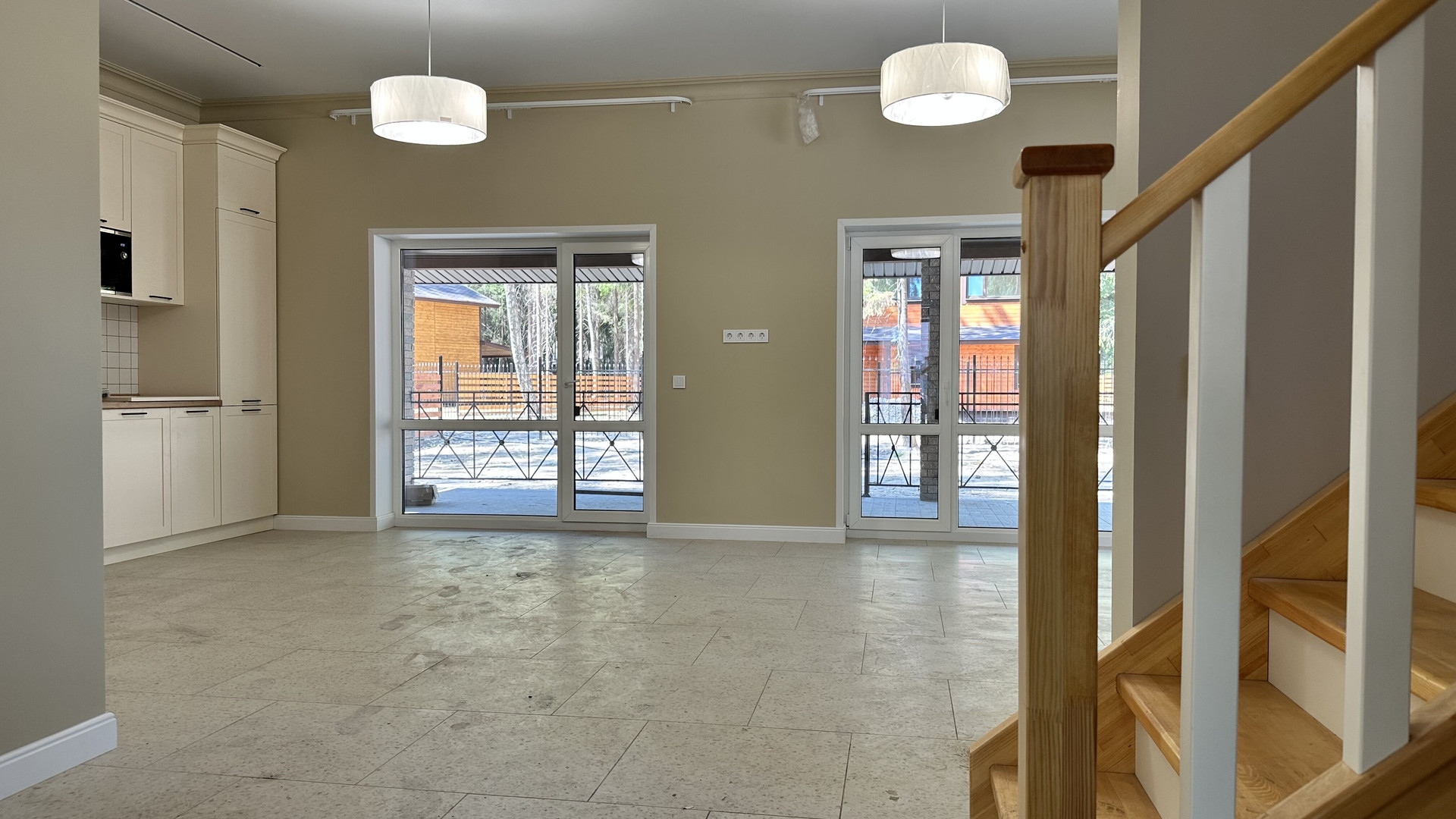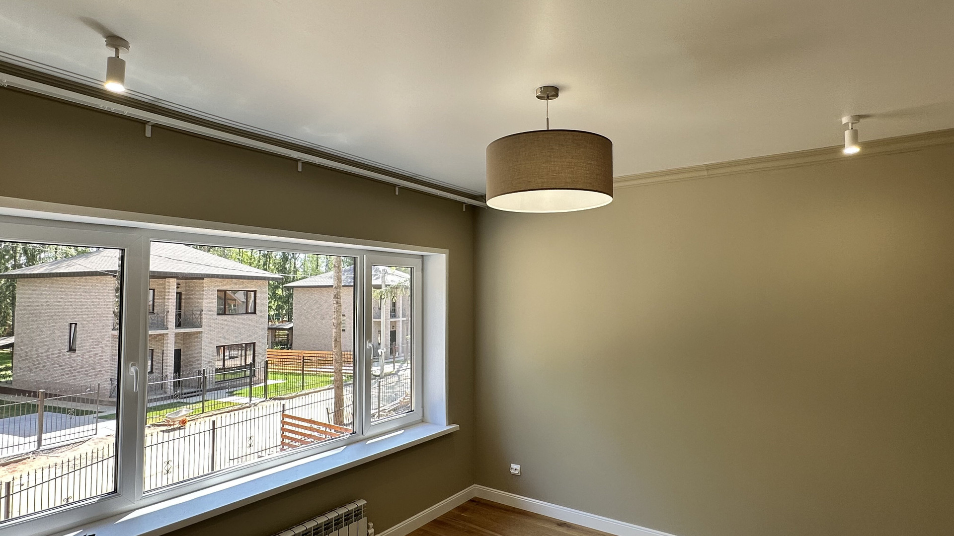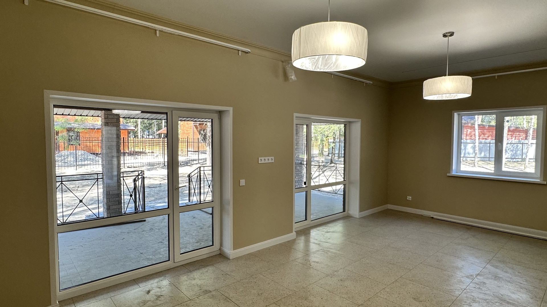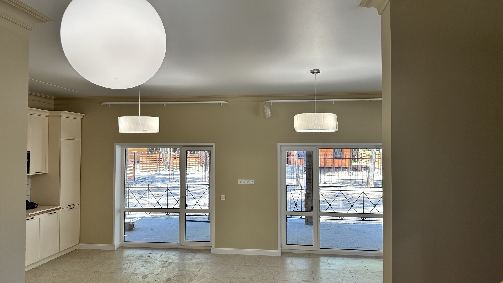 — Смонтированы натяжные потолки на первом этаже;