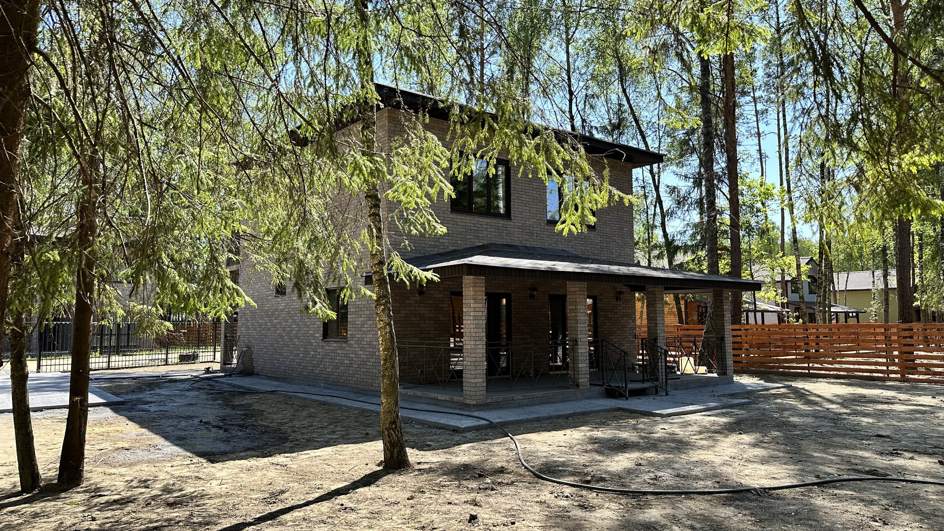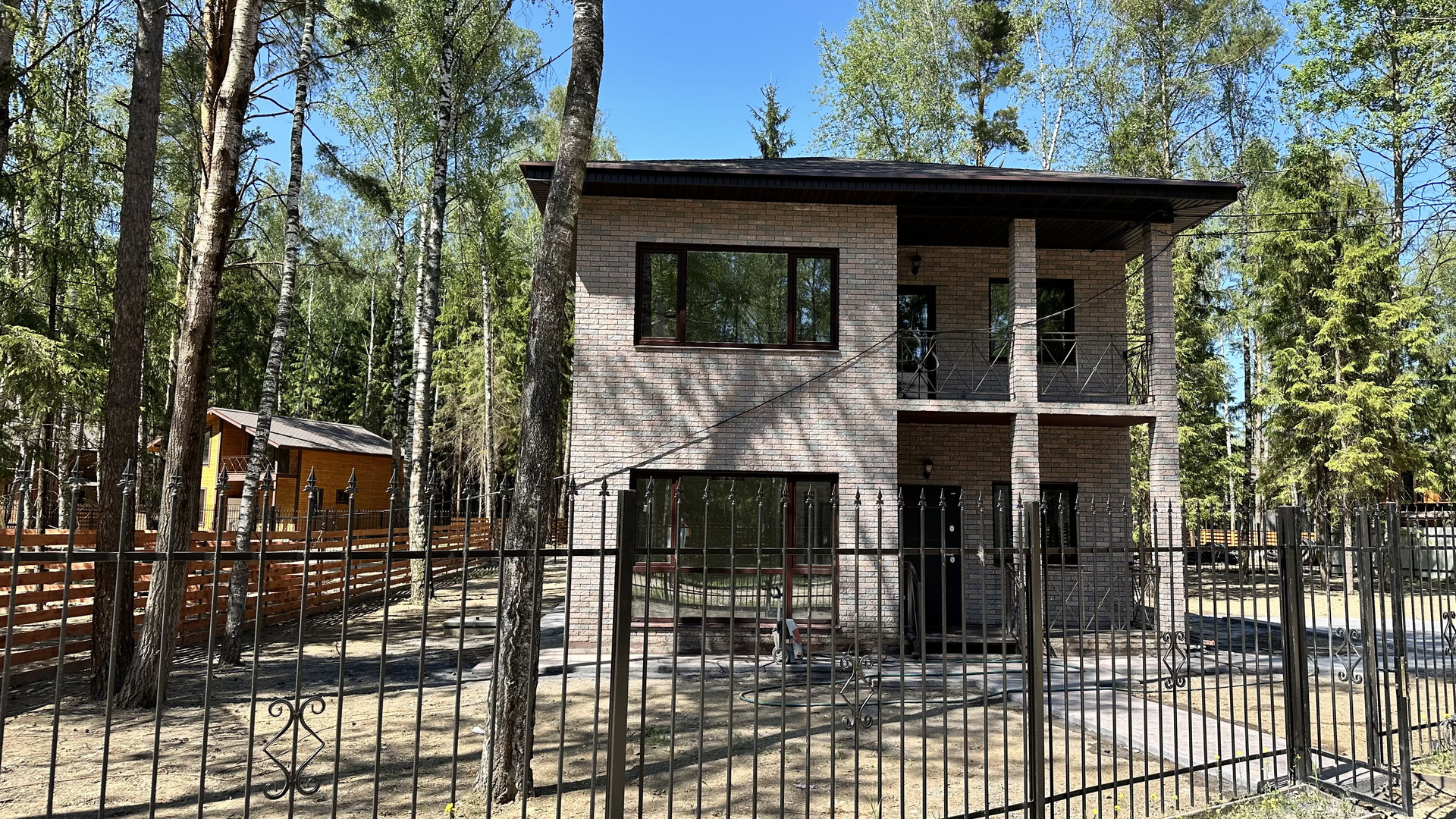 — Забор по периметру участка, установлены распашные ворота;