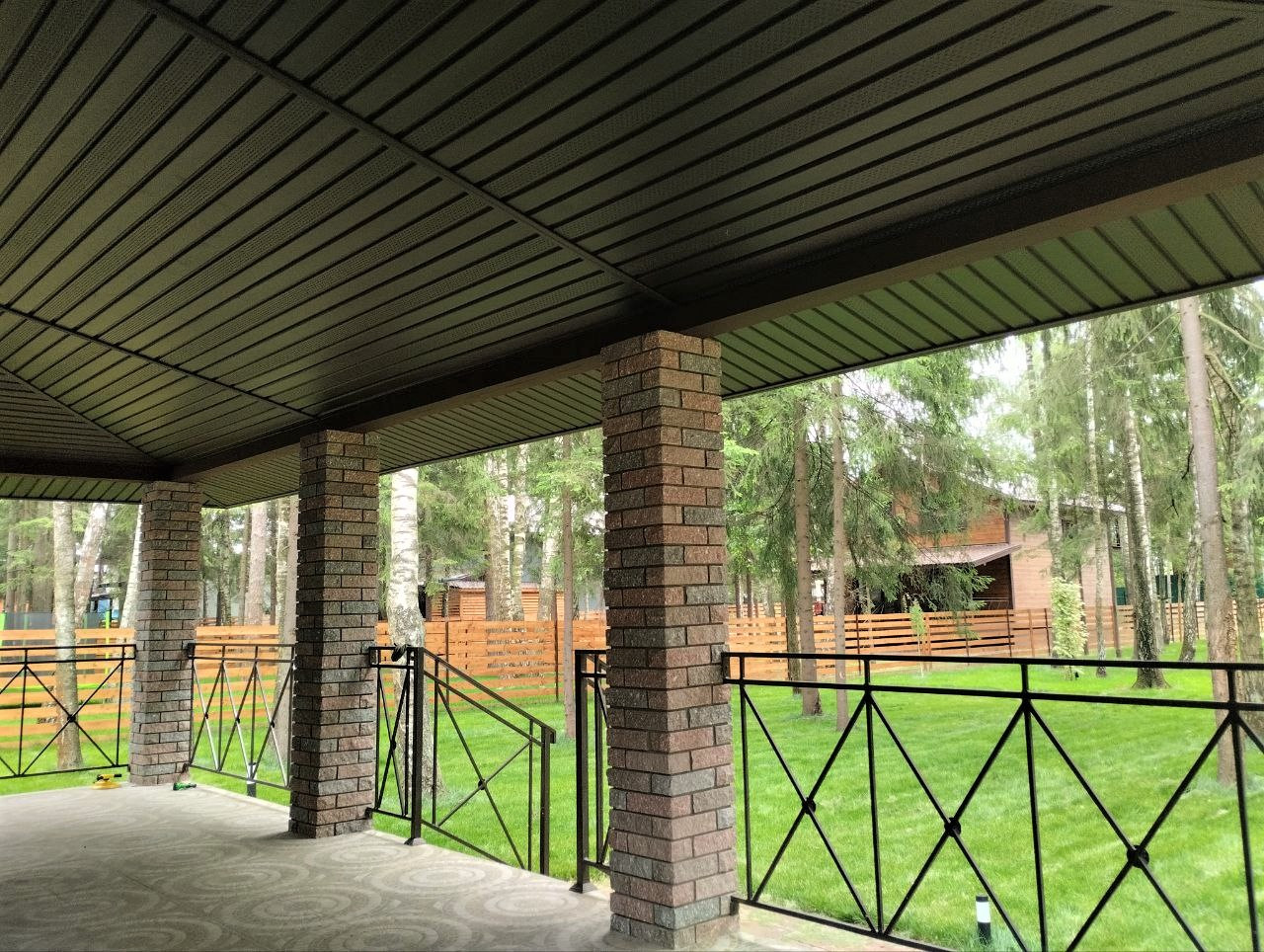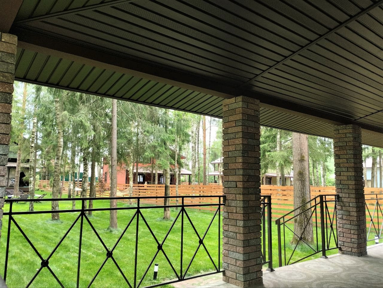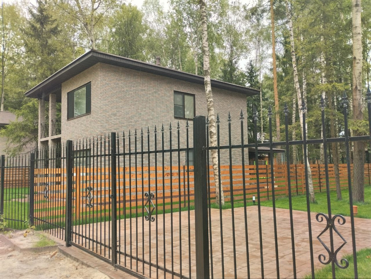 — Забор по периметру участка, установлены распашные ворота;
