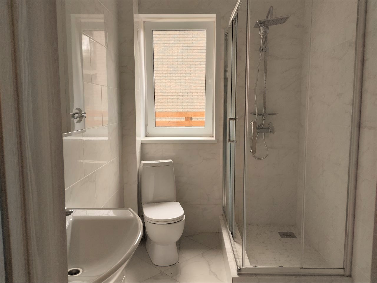 — Уложен керамогранит в санузлах, установлена сантехника на 1-м этаже;