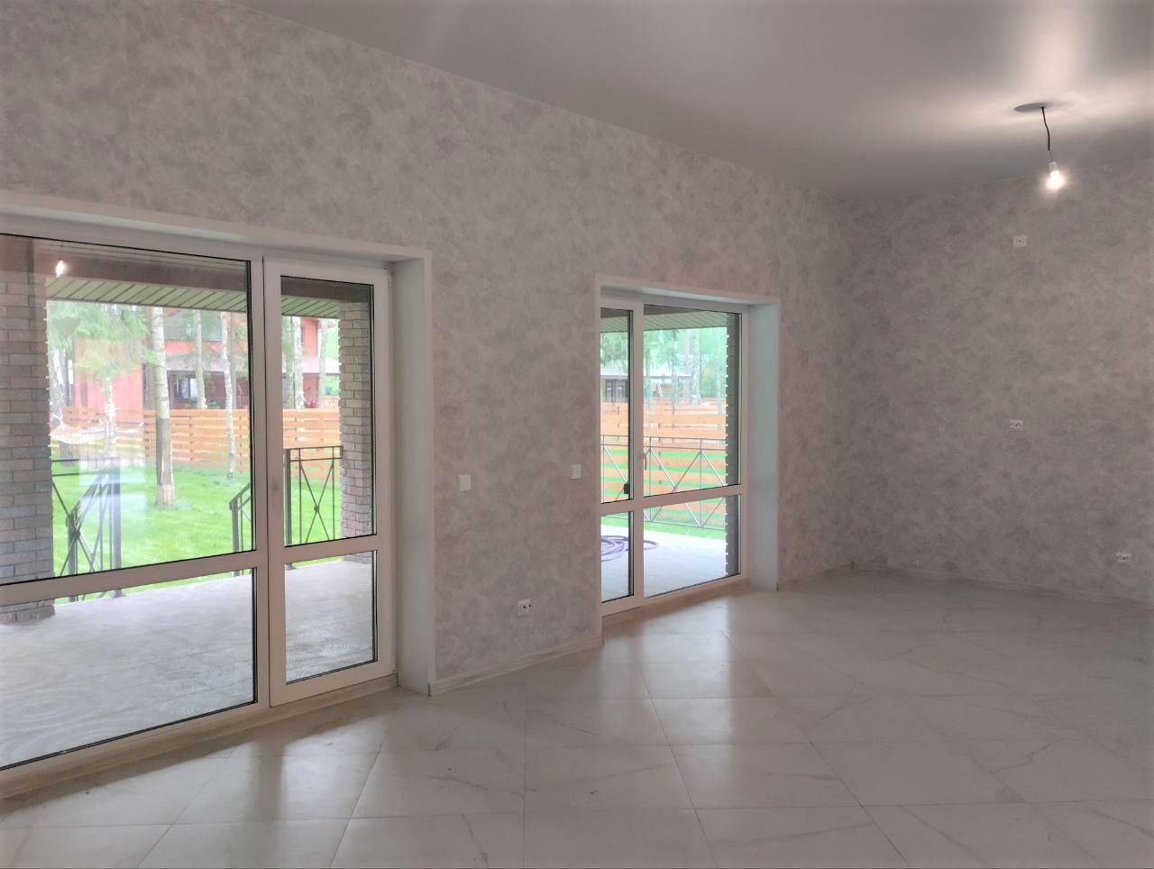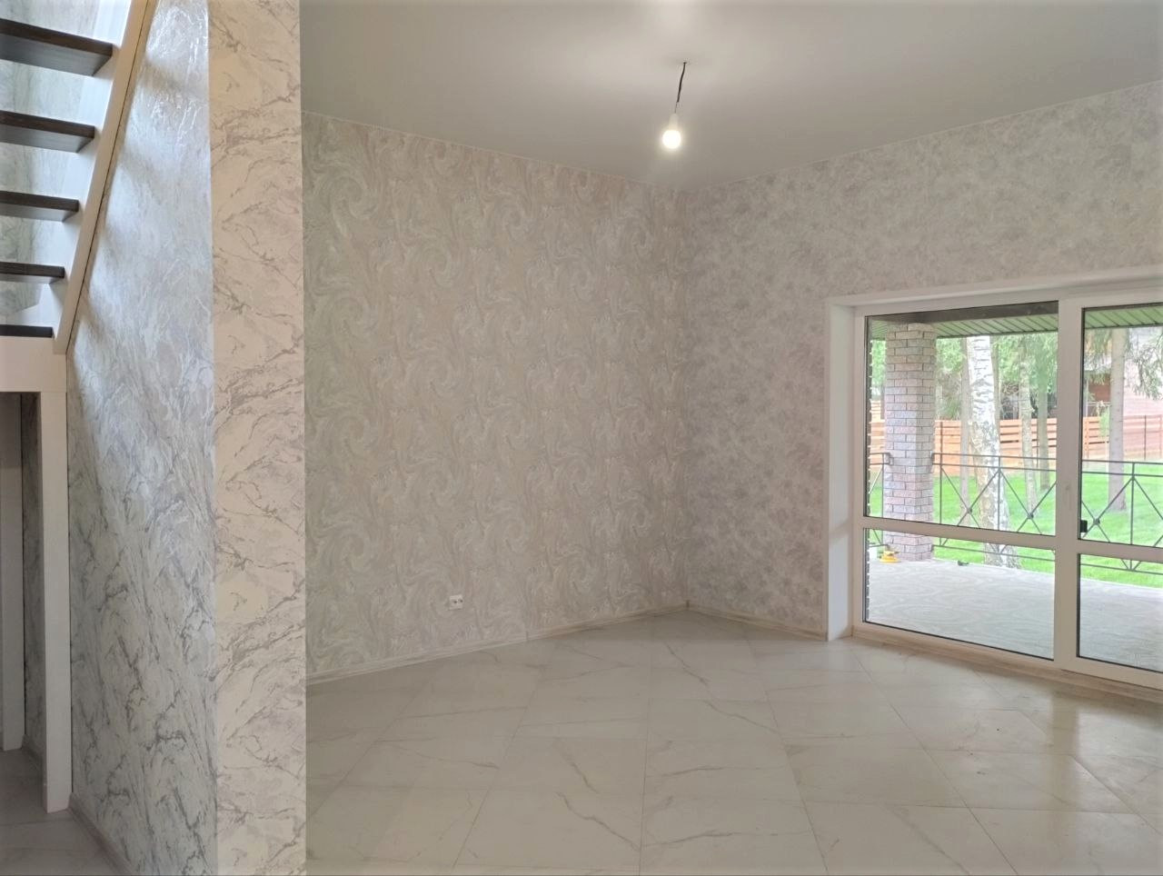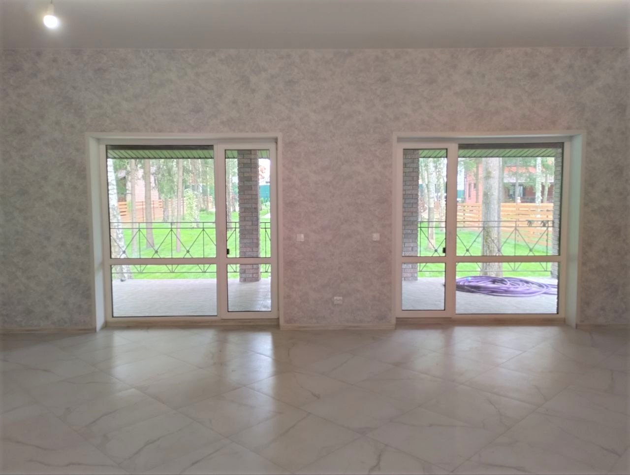 — Смонтированы натяжные потолки на первом этаже;