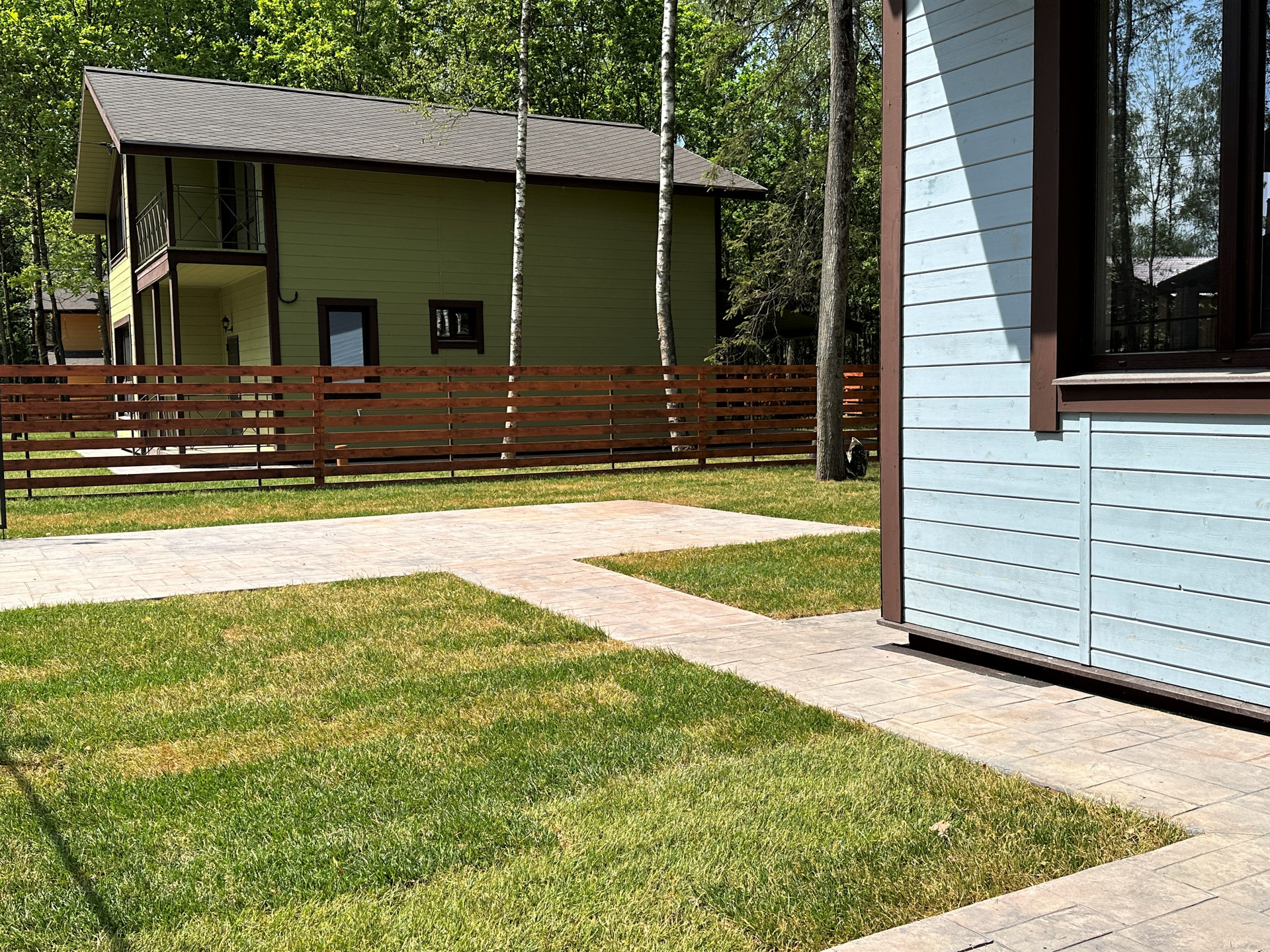 Постелен рулонный газон на участке! Смонтирован фотобетон!