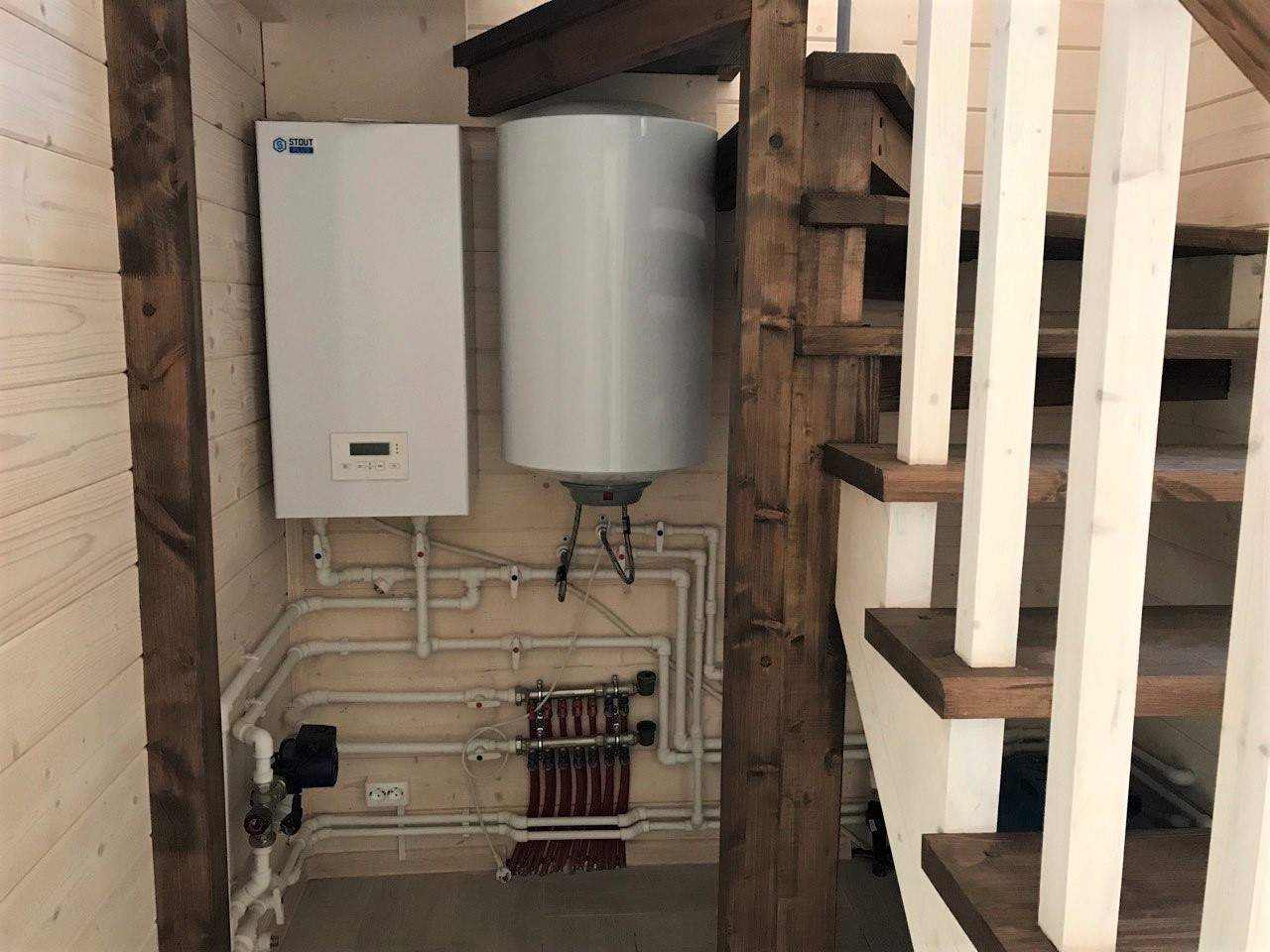 — Тёплый пол на первом этаже, радиаторы отопления на втором;
