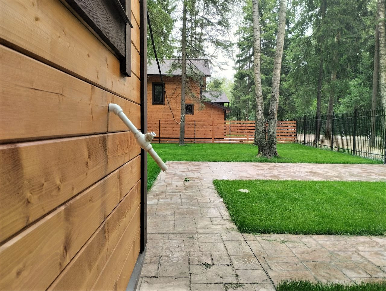 Забор по периметру участка, установлены распашные ворота;