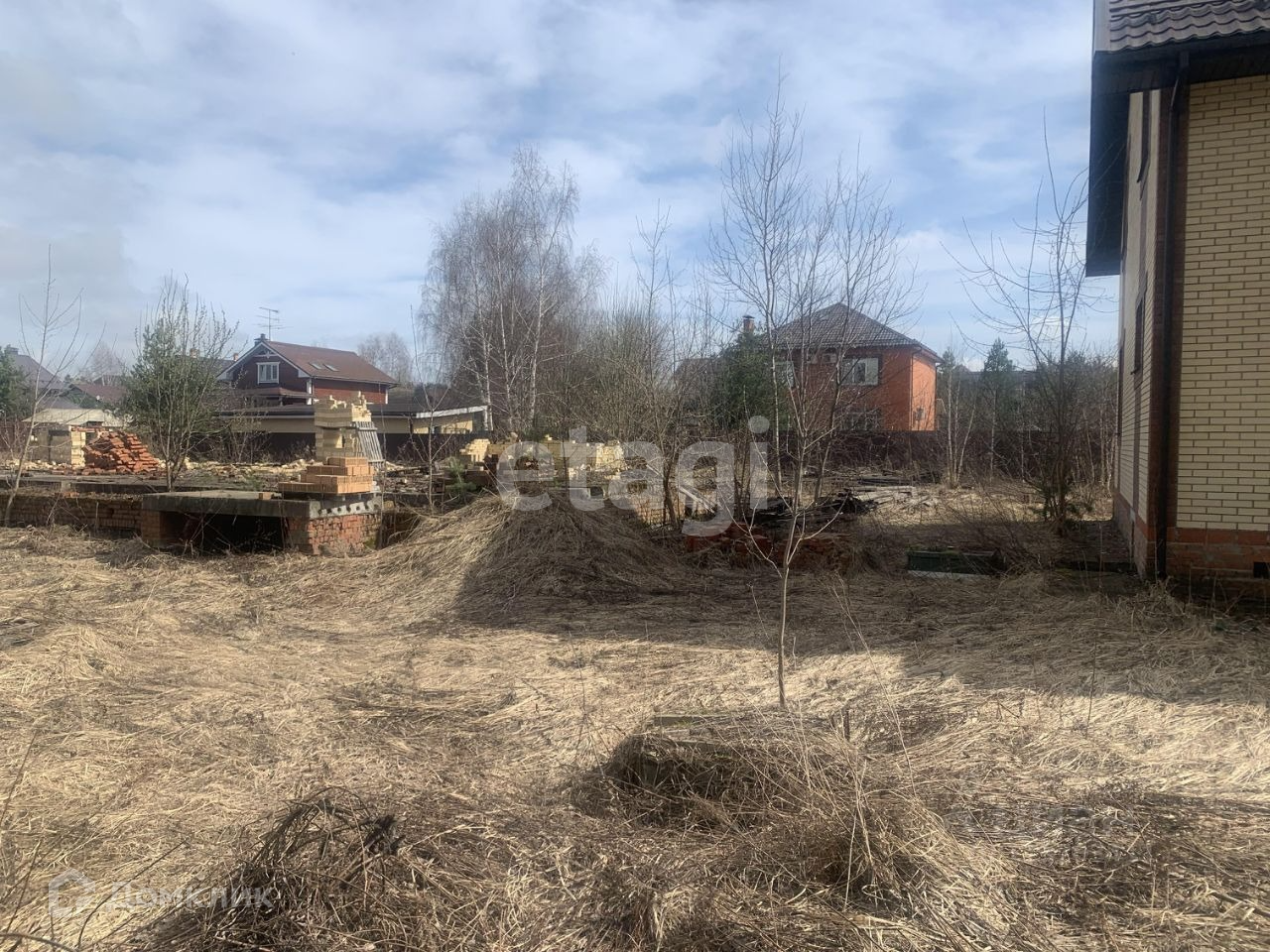 На участке уже имеется ленточный фундамент под проект двухэтажного дома. В непосредственной близости находятся строительный рынок, магазин продуктов, автосервис. Автобусная остановка находится всего в 5 минутах ходьбы, откуда можно доехать до города и железнодорожной станции.