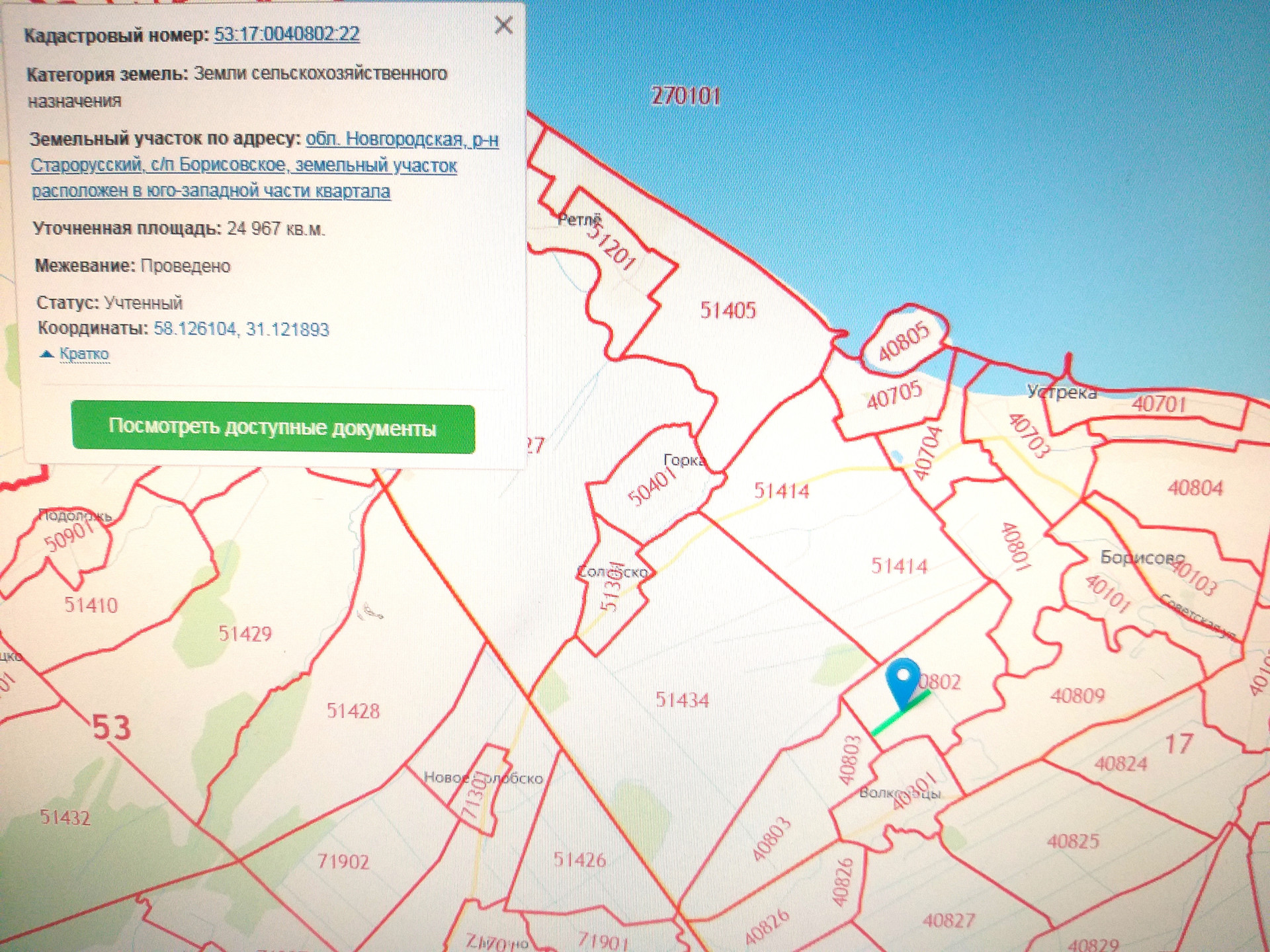 Продам!!! Земельный участок площадью 25 сот (53:17:040802:22) на южном берегу оз. Ильмень, д. Устрека, Старорусского р-на, Новгородской обл.
