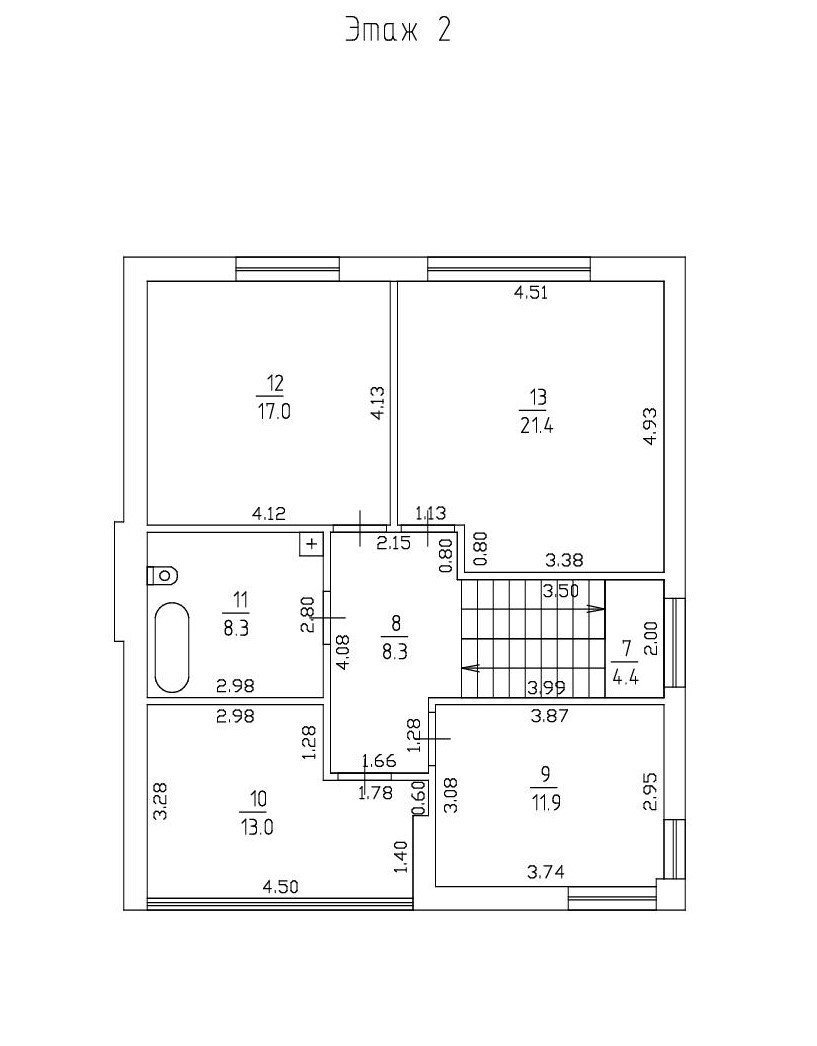 Высота первого этажа- 3 м, второго 2,7 м