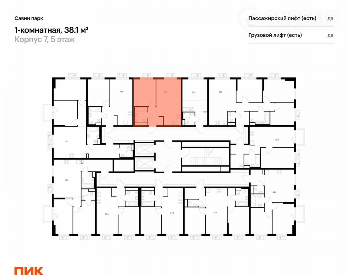 1-комнатная квартира, 38.1 м2, этаж 5 / 17, на продажу в деревне Утечино, жилой комплекс Савин Парк, к7