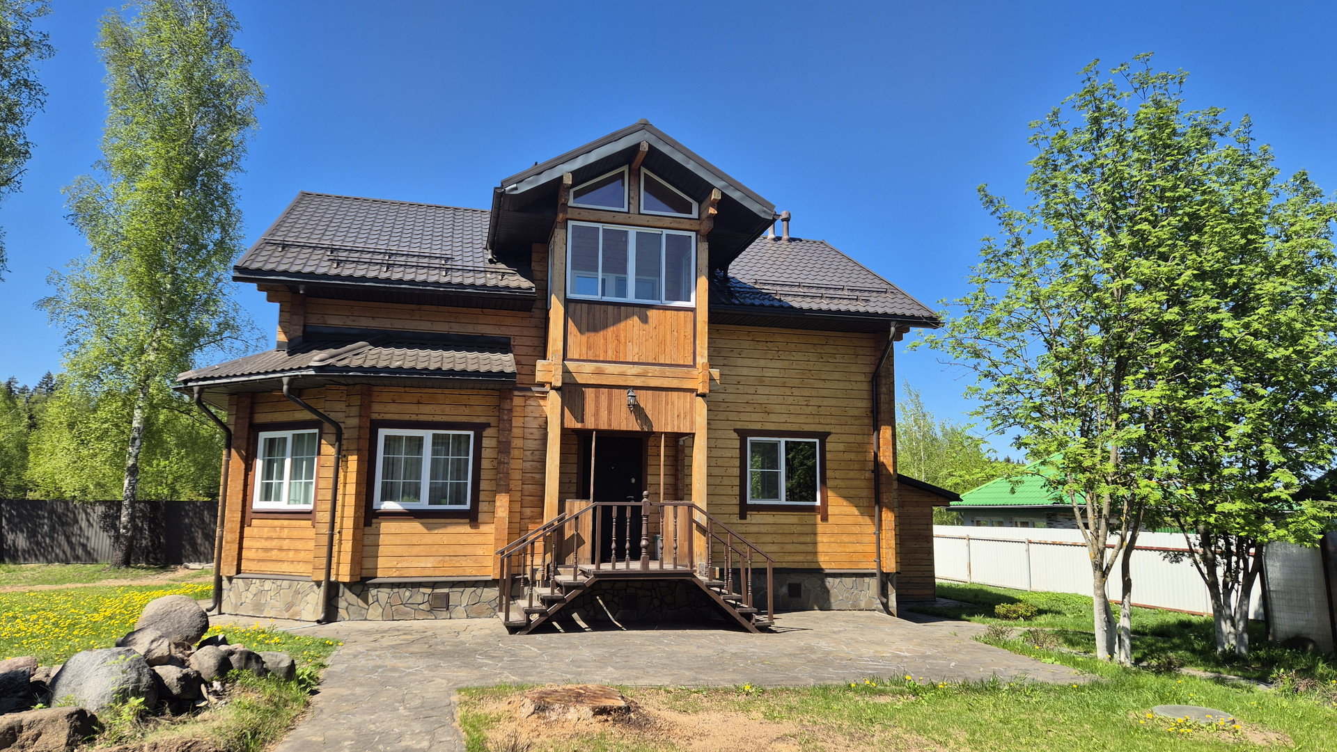 г. Москва, дер. Уварово, 33 км от МКАДпо Киевскому или 28 км по Калужскому шоссе. Дом из клеёного профилированного бруса (внешние стены толщиной 200мм, внутренние стены 120 мм). Участок 10,4 соток, ИЖС. Дом 2-х этажный: 1-й этаж - прихожая, гардеробная, гостевая комната, кухня-гостиная, с/у; 2-й этаж - 3 спальные комнаты, с/у, лоджия. Окна производства Kaleva, двухкамерные. Электрика проведена скрытным путем, находится внутри стен. Теплый пол- водяной на 4 отдельно-регулируемых контура. Кровля: металлочерепица, цвет коричневый. Бойлерная: пеноблок 300*600 мм., обшита снаружи евровагонкой, внутри выложена плиткой. Оборудование: бойлер косвенного нагрева 200 л.Viessman, котел Viessman 24 кВт, система умягчения воды, расширительный бак (гидроакккумулятор) на 50 л., теплый пол на 4 контура. На участке расположены крытая беседка площадью 48 кв.м. с зоной для барбекю, навес на 2 а/м. Электричество 15кВт (Мосэнерго),оптоволоконный интернет, скважина, септик. Асфальтированный подъезд до самого дома. Развитая инфраструктура - магазины, детские сады, школа, полноразмерное футбольное поле и крытая ледовая арена, фитнесс клуб, медицинский центр и стоматология, в 200 метрах от дома детская площадка и прогулочная зона в хвойном лесу. Прописка Москва. Оперативный показ.
