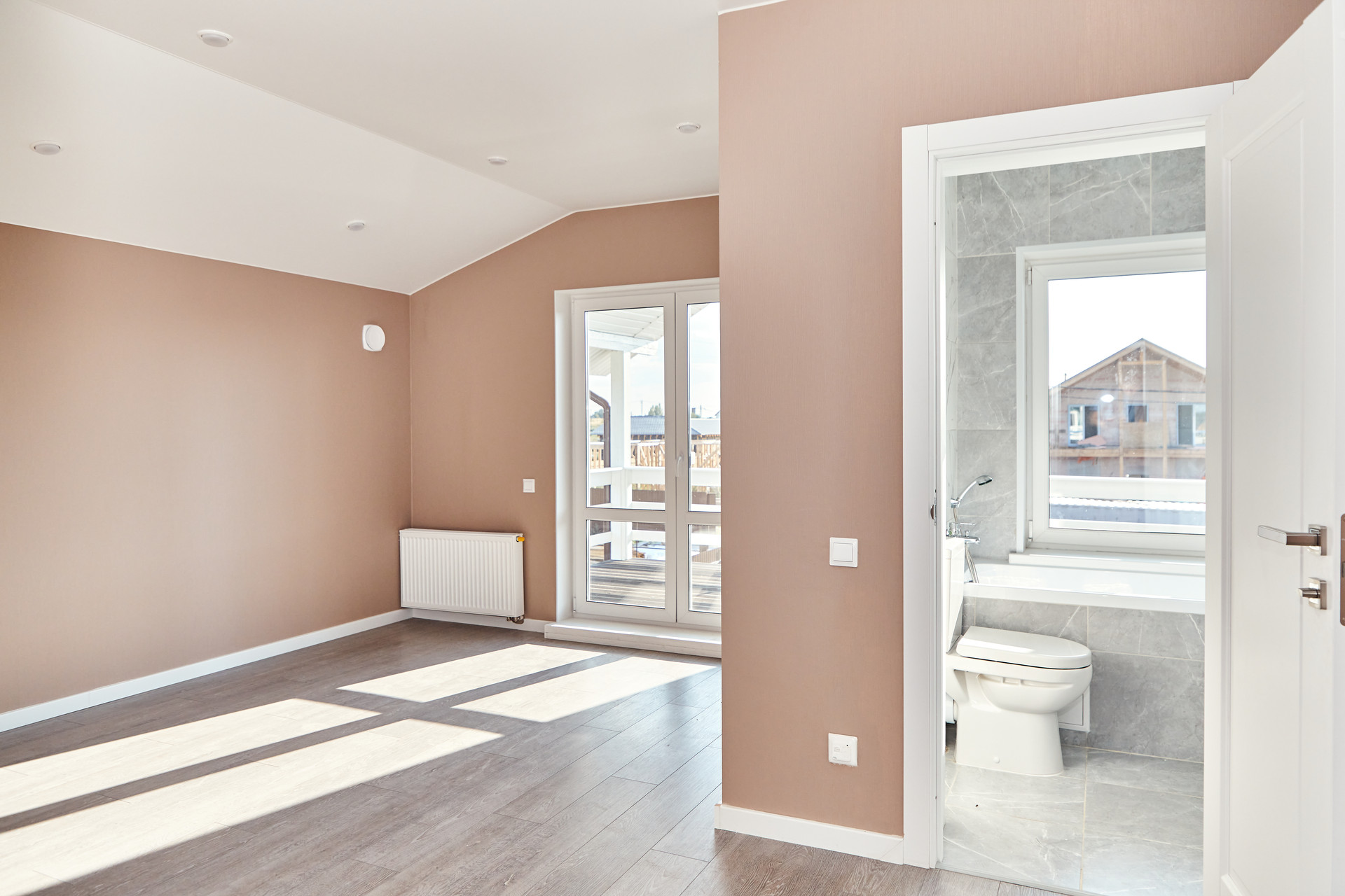 В доме сделана мастер-спальня;