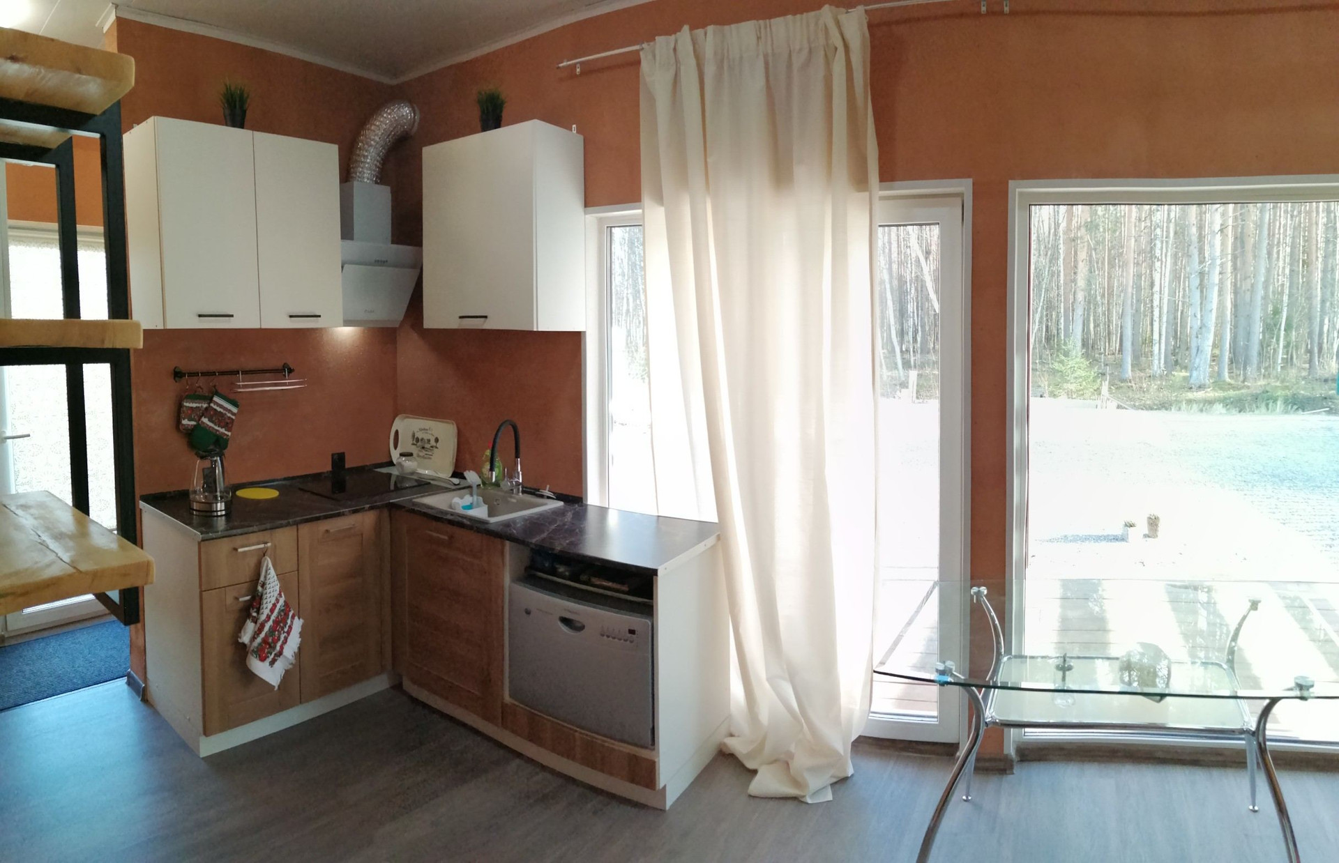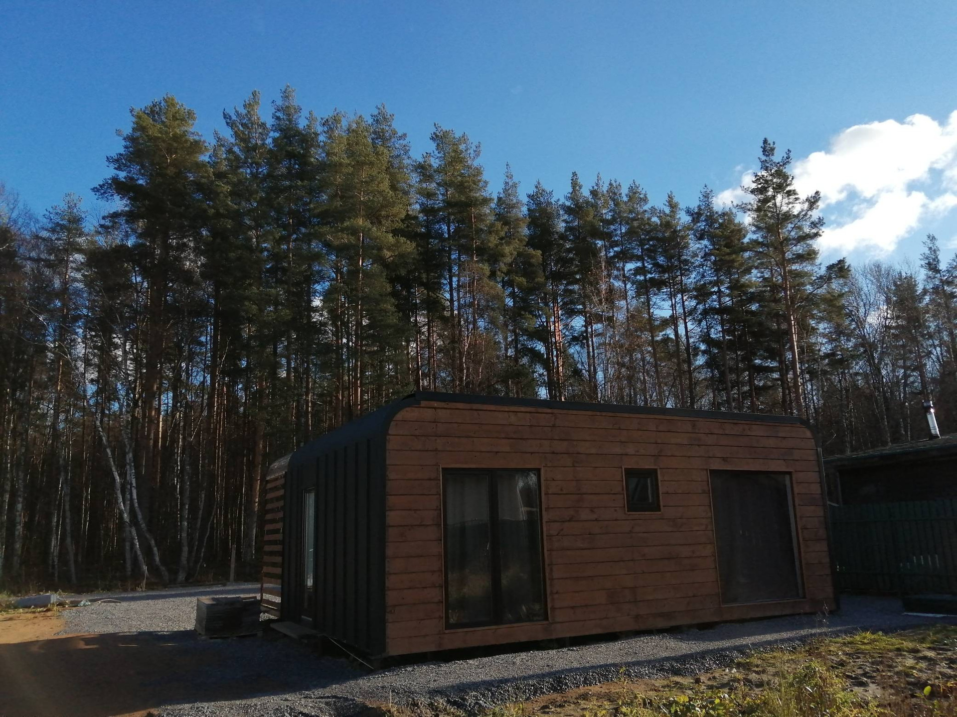 Продаётся дом с выходом в лес, для круглогодичного проживания. Электрические тёплые полы в каждом помещении. В доме всё есть, бытовая техника, телевизор, кухня, кровати (парящие), Диван, душ, туалет- заезжай и живи. Панорамные окна с видом на прекрасные сосны.