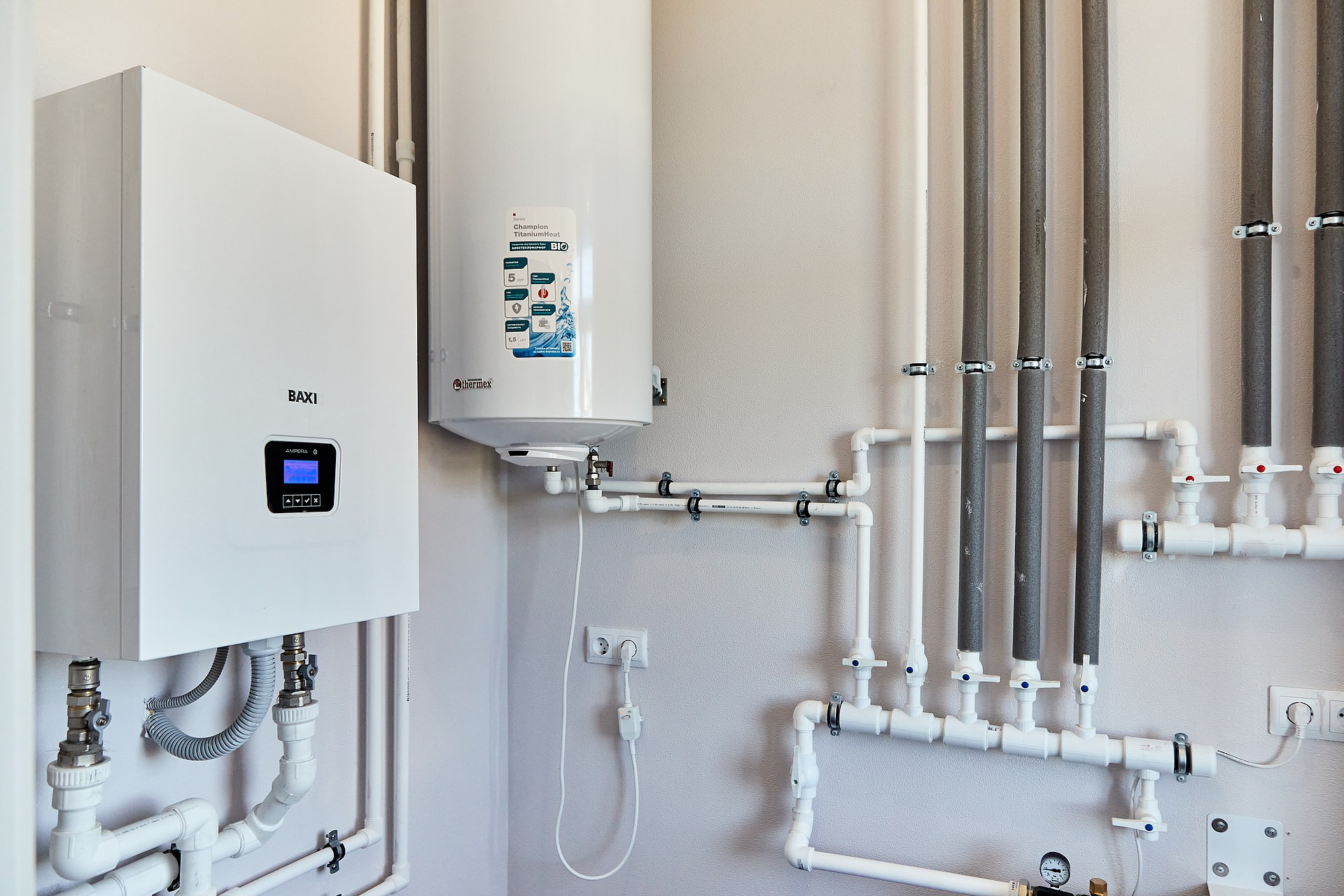 ✓ Комбинированная система нагревания котел+бойлер (обеспечивает бесперебойную подачу горячей воды);