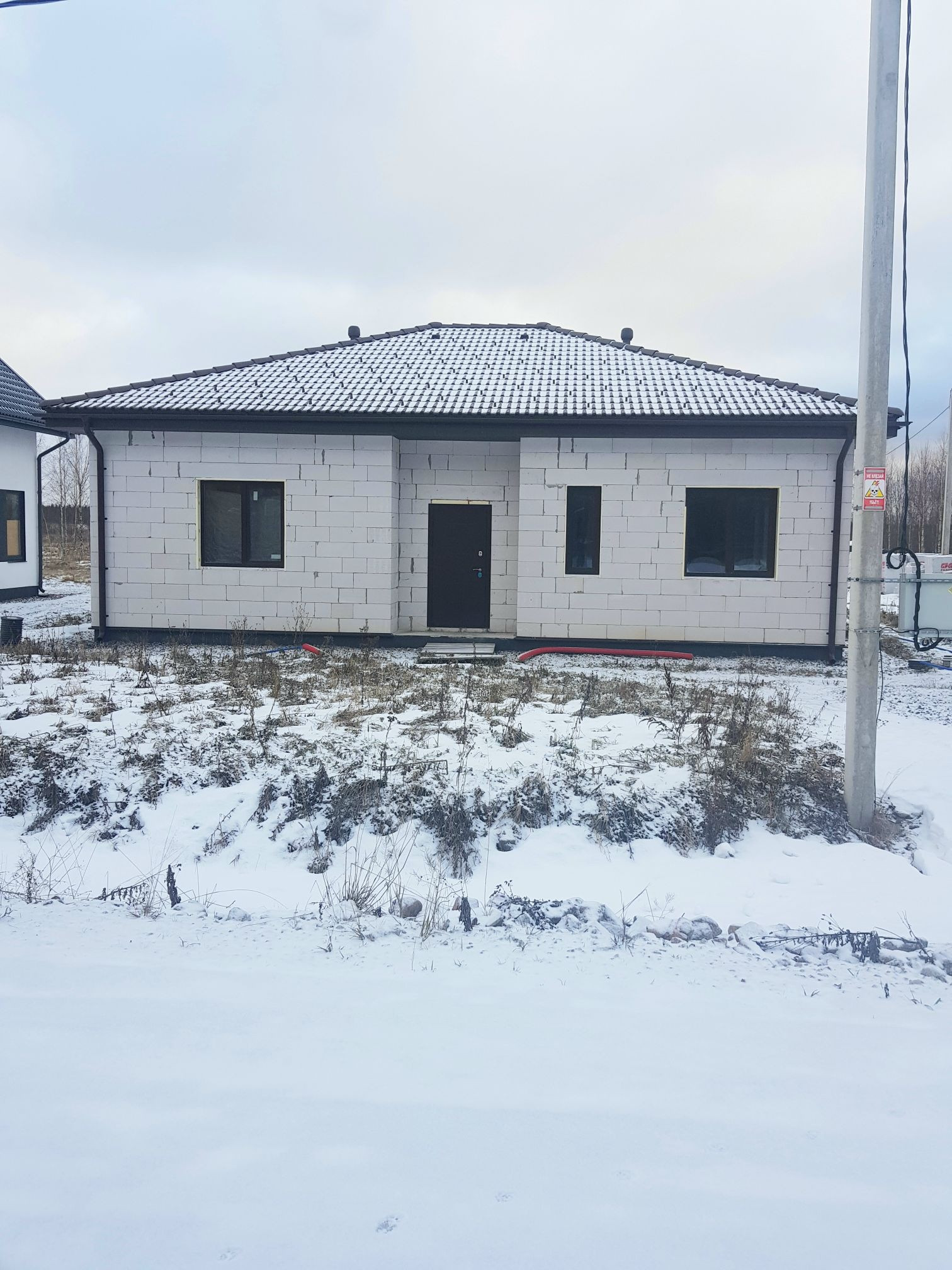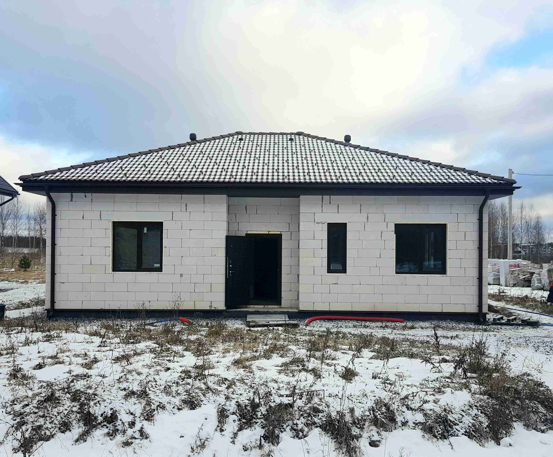 Дом из газобетона для круглогодичного проживания на монолитной плите УФФ(+дренаж) ,с теплыми полами и разводкой под все коммуникции.Крыша вальмовая с черепицей BRAAS .высота потолков 3,3м.Перегородки селикатные с повышенной звукоизоляцией. Окна VEKA 70мм с ламинцией,2к энергосберегающие стеклопакеты для теплых полов.Есть проект дома.