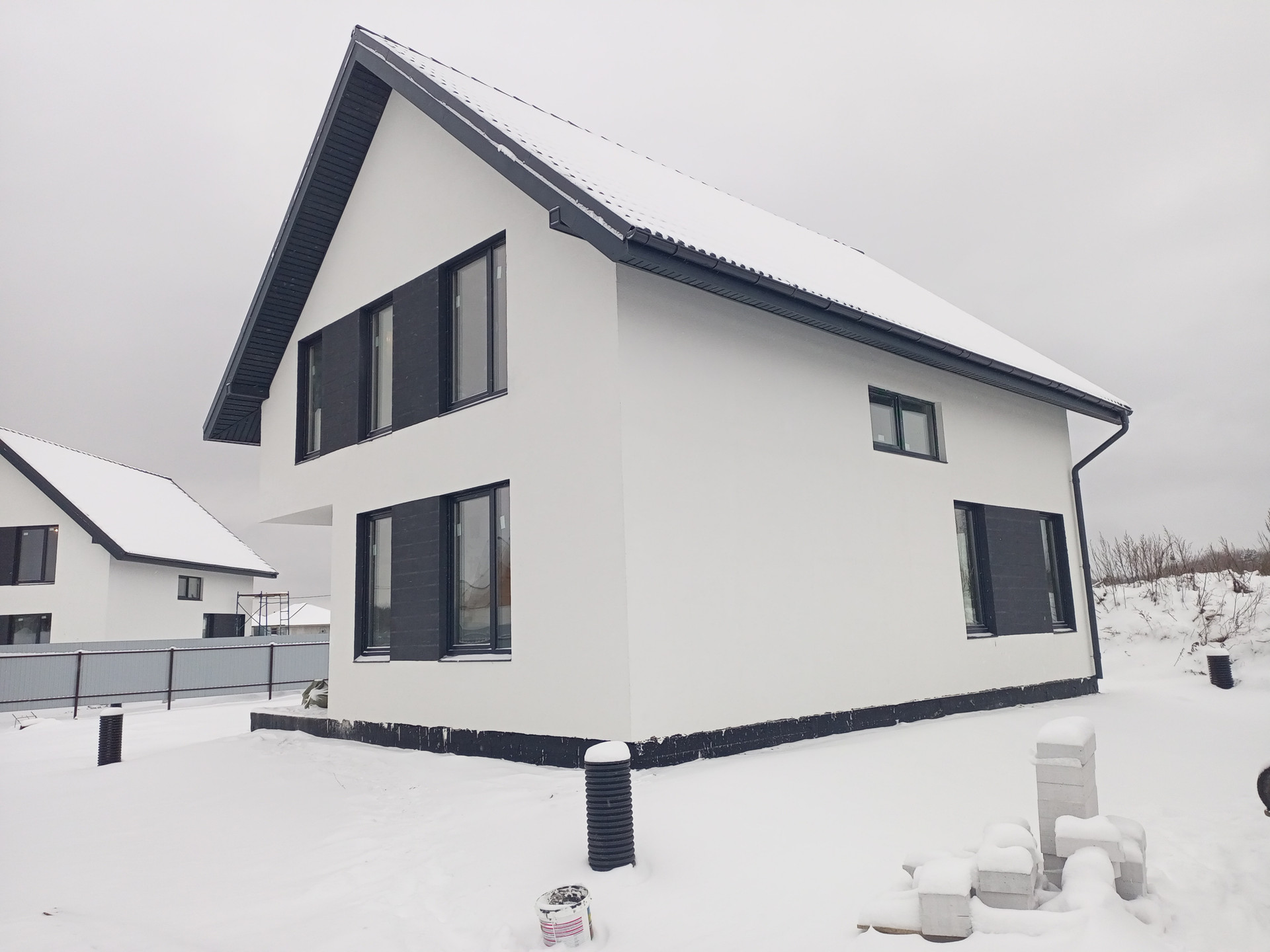Вашему вниманию предлагается просторный дом общей площадью 159 м.кв 2022 года постройки на участке 13,1 соток ИЖС, огорожен, в 15 км. от Петергофа под отделку по Вашим предпочтениям ( возможно под Ваш заказ). Фундамент- плита 300 мм., стены- газобетон D 400, кровля- металлочерепица, электроснабжение 15 кВт. На первом этаже прихожая 7,4 м.кв, кухня-гостиная 42,1 м.кв., комната 11,6 м.кв., с/у 4,4 м.кв, подсобные помещения, панорамные окна, отопление-теплый пол, потолки 2,8 м.