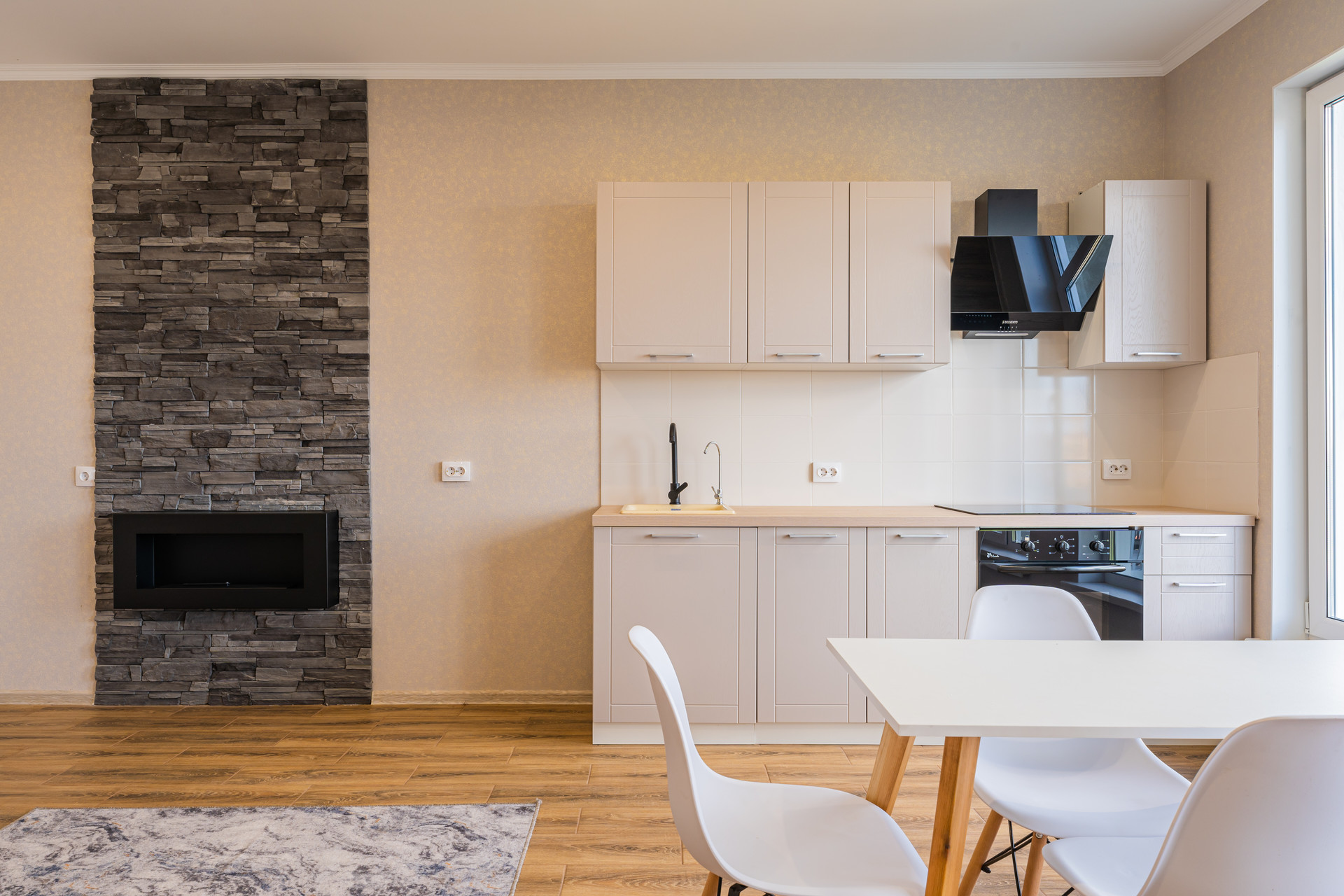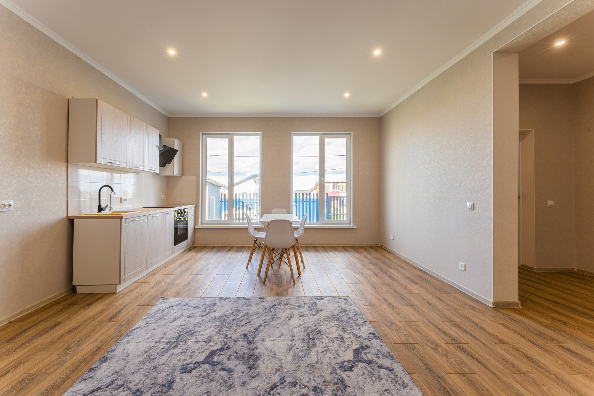 • полностью оборудованная кухня с встроенной варочной панелью и встроенным духовым шкафом;