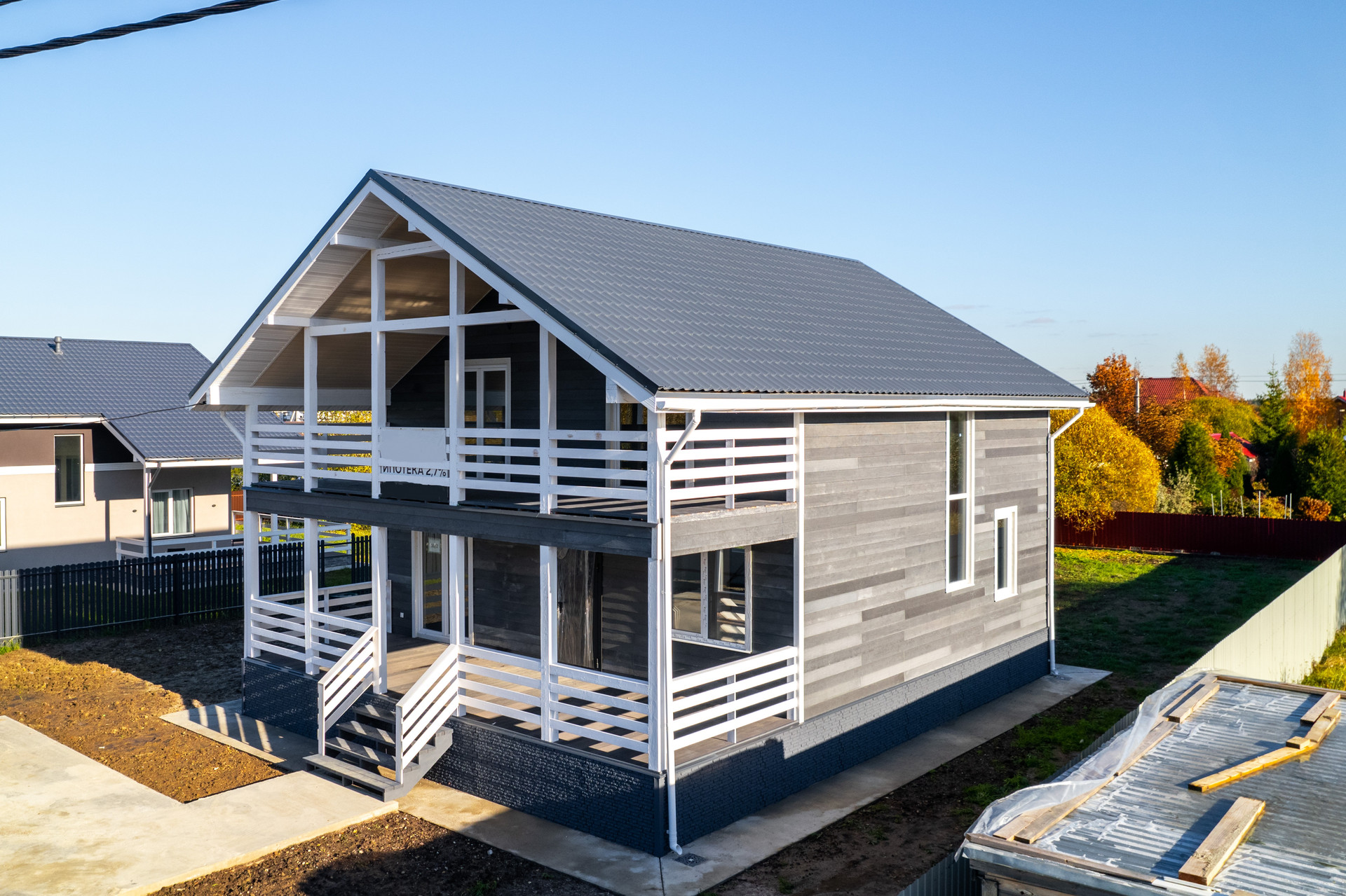 Дом с участком уже с благоустроенной территорией, подключенными коммуникациями. Предусмотрена чистовая отделка: