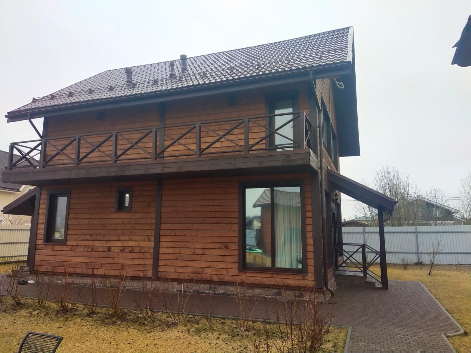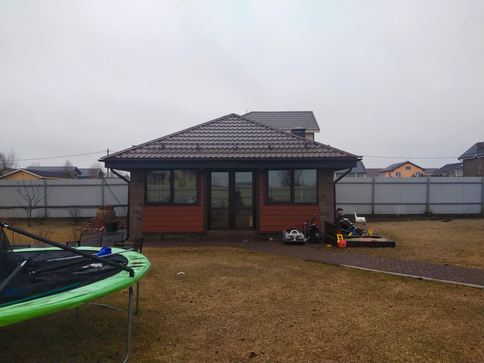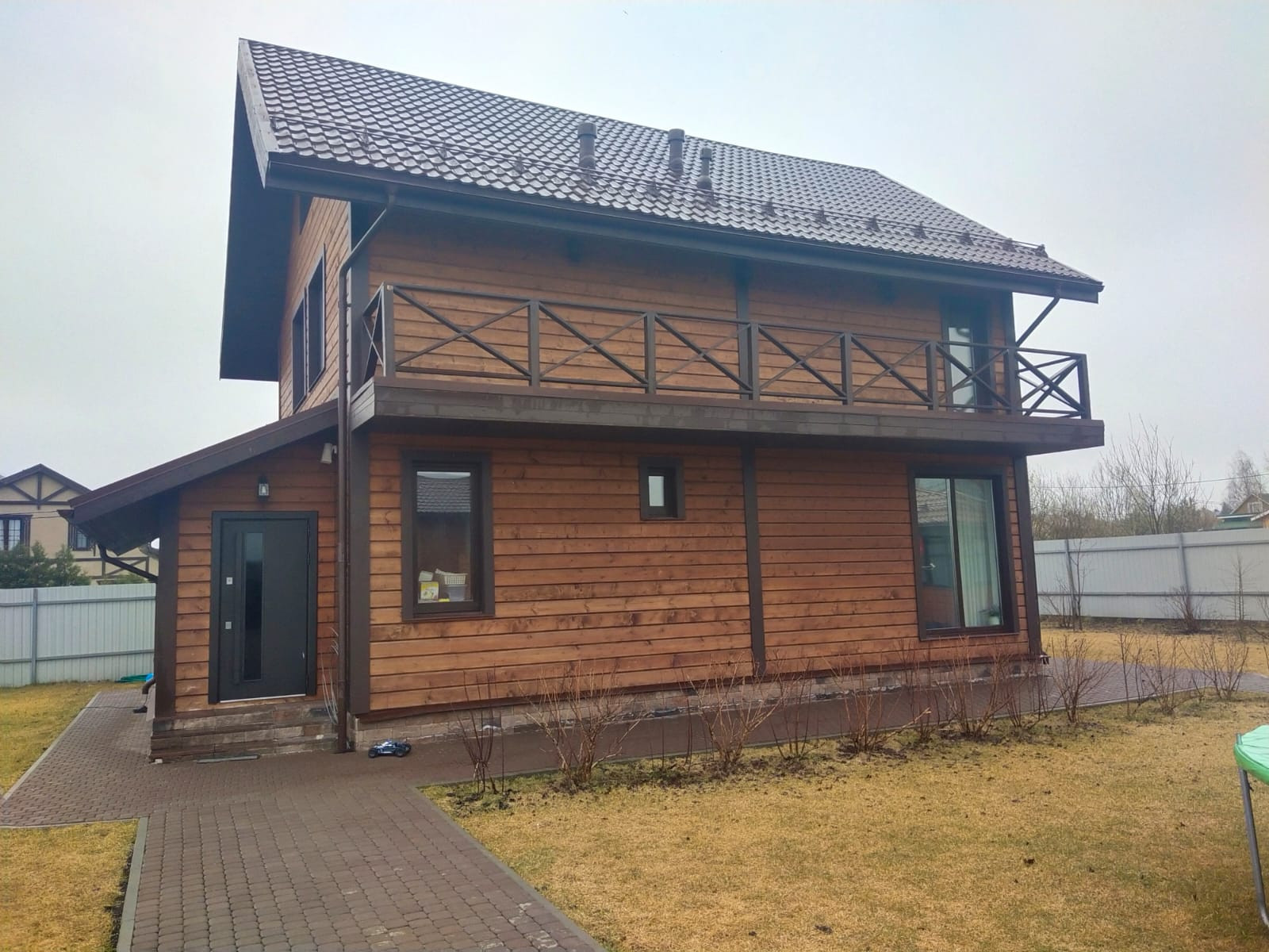 Участок полностью ухожен и разработан. Сделан дренаж, посажены газон и деревья, парковочное место на две машины и дорожки из брусчатки. На участке расположен Дом, гараж, летняя кухня и детская площадка.