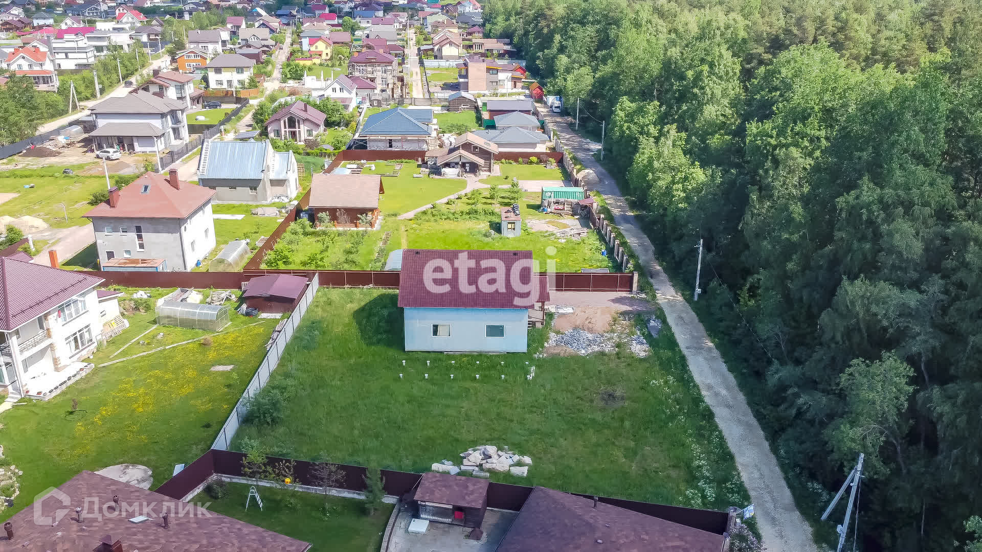 Большой участок правильной формы, есть много места для навеса/гаража/мангальной зоны/детской площадки/сада/огорода.