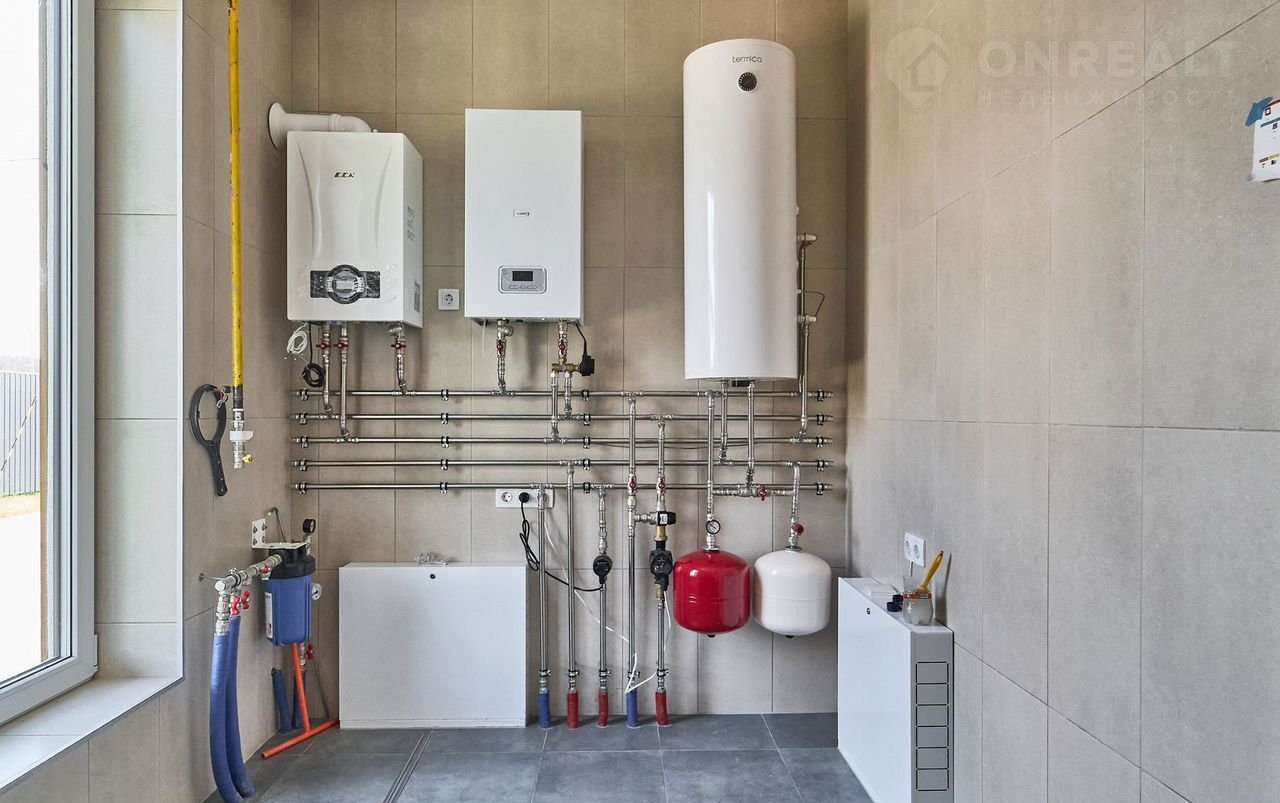 Дом подключён к центральной воде и канализации, электричеству (15 кВт). Газ будет запущен осенью 2025 года. Установлен котёл с бойлером, вентиляция с рекуперацией, кондиционер. «Умный дом» позволяет управлять светом, отоплением и безопасностью прямо со смартфона.