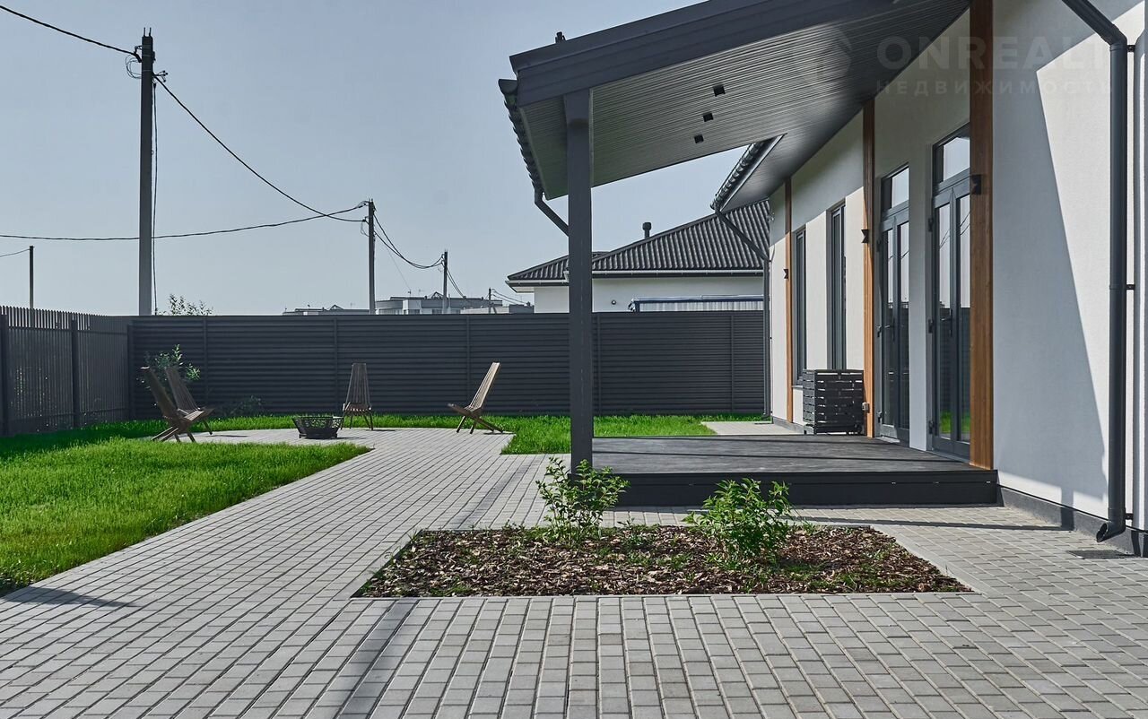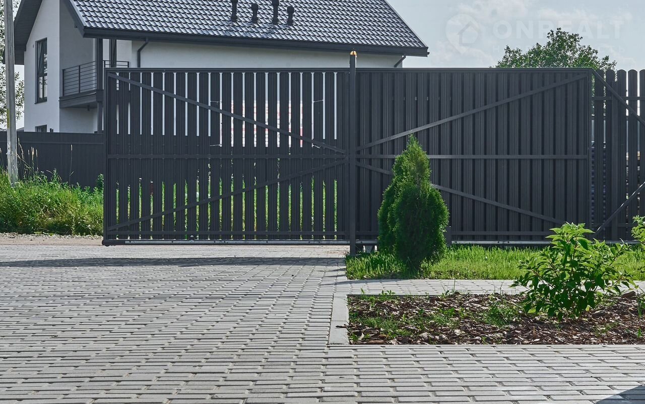 Ухоженная территория с газоном, клумбами и туями для уединения. Парковка для автомобилей, зона барбекю, аккуратные дорожки и ограждение с автоматическими воротами. Здесь легко проводить тёплые вечера с семьёй и друзьями.