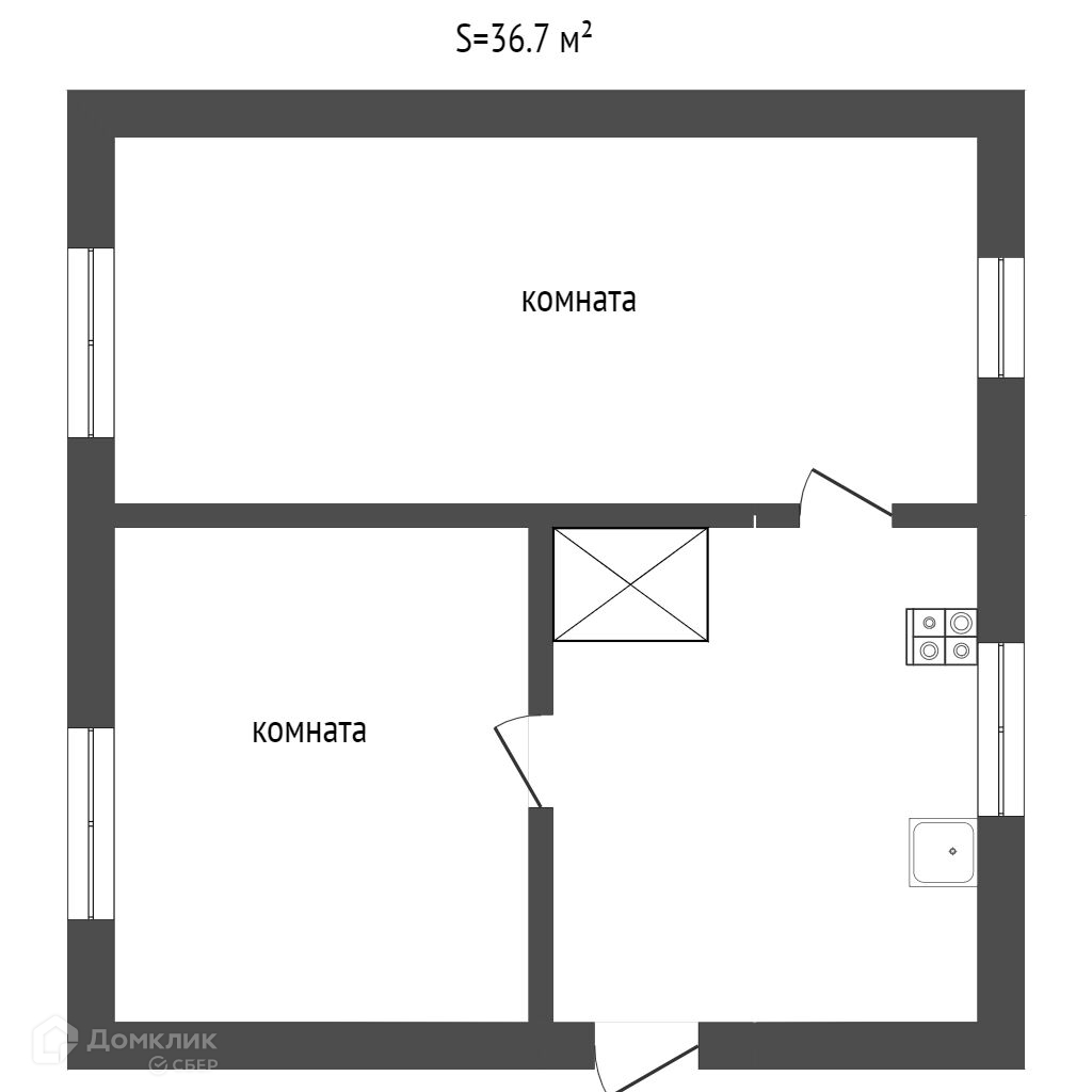 Общая площадь 36.7 м2
