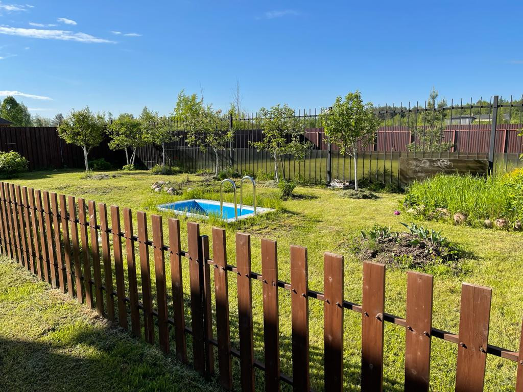 Предлагается 2-х эт. газобетонный дом, построенный в коттеджном поселке "Гатчинские Поместья" на земле ИЖС. Дом снаружи оштукатурен, внутри полностью отделан, меблирован и оснащен всей крупной и мелкой бытовой техникой. В основном доме оборудованы 2 спальни, 2 санузла, бильярдная, гостинная с камином и кухня, а также множество подсобных помещений. Из одной из спален есть выход на балкон. В дом заведены все коммуникации: электричество 30 квт, газ, водопровод с системой очистки и центральная канализация. На участке расположен еще гостевой дом с одной спальней, сауной и камином, выстроен крытый бассейн с подогревом и постоянной циркуляцией воды, площадью 25 кв.м. Кроме того на участке имеются подсобные надворные постройки, фруктовые деревья и декоративные посадки. Дополнительно к участку 7 сот. оформлено в аренду еще 10 соток земли, примыкающей с Юго-запада. Территория КП обнесена забором и охраняется. От Санкт-Петербурга 38 км по Ленинградскому ш.