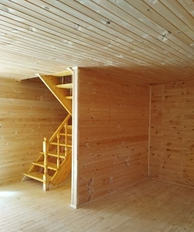 Дом пеноблочный, теплый, изнутри отделан имитацией бруса из хвойных пород, снаружи - сайдингом.