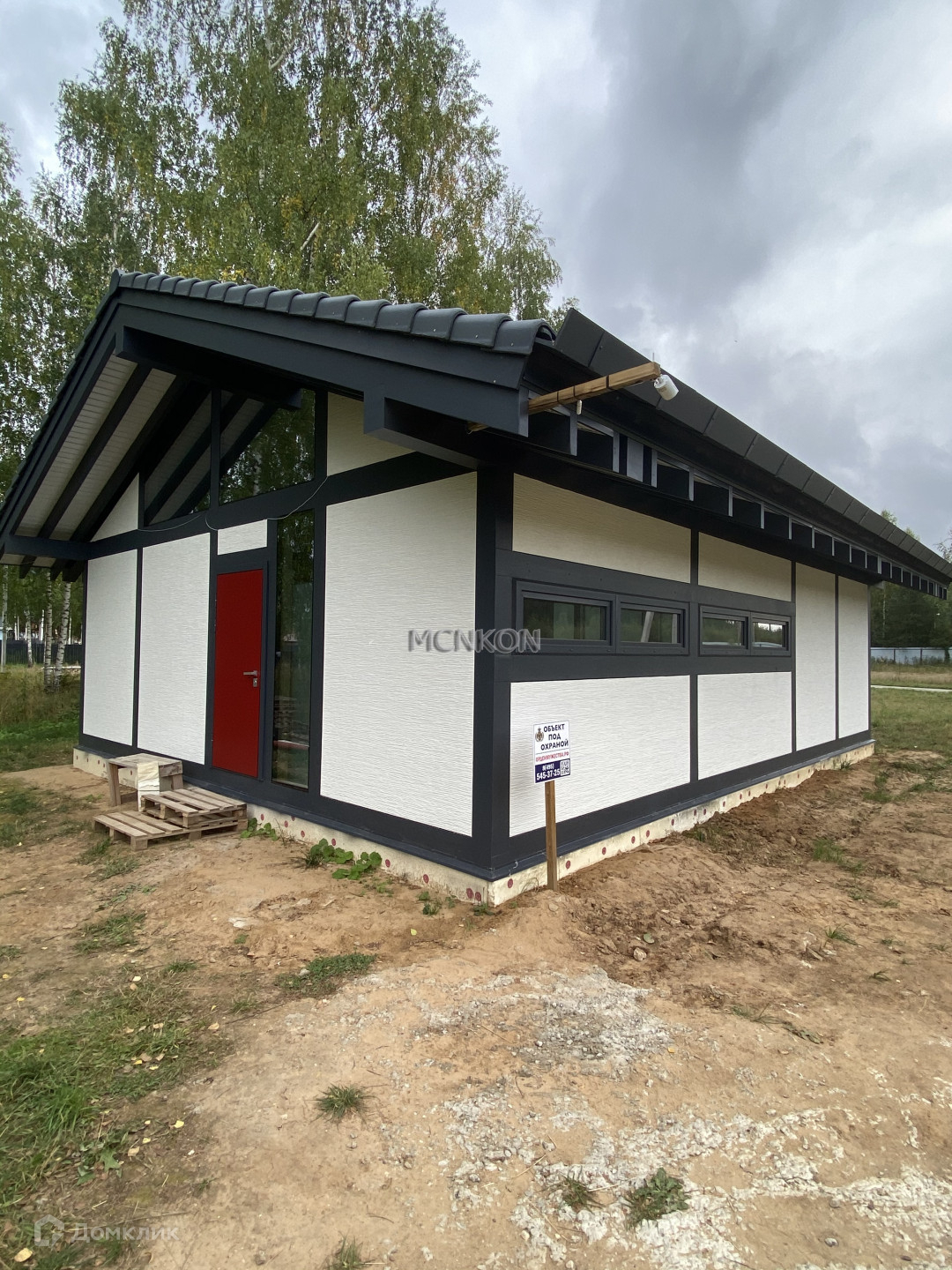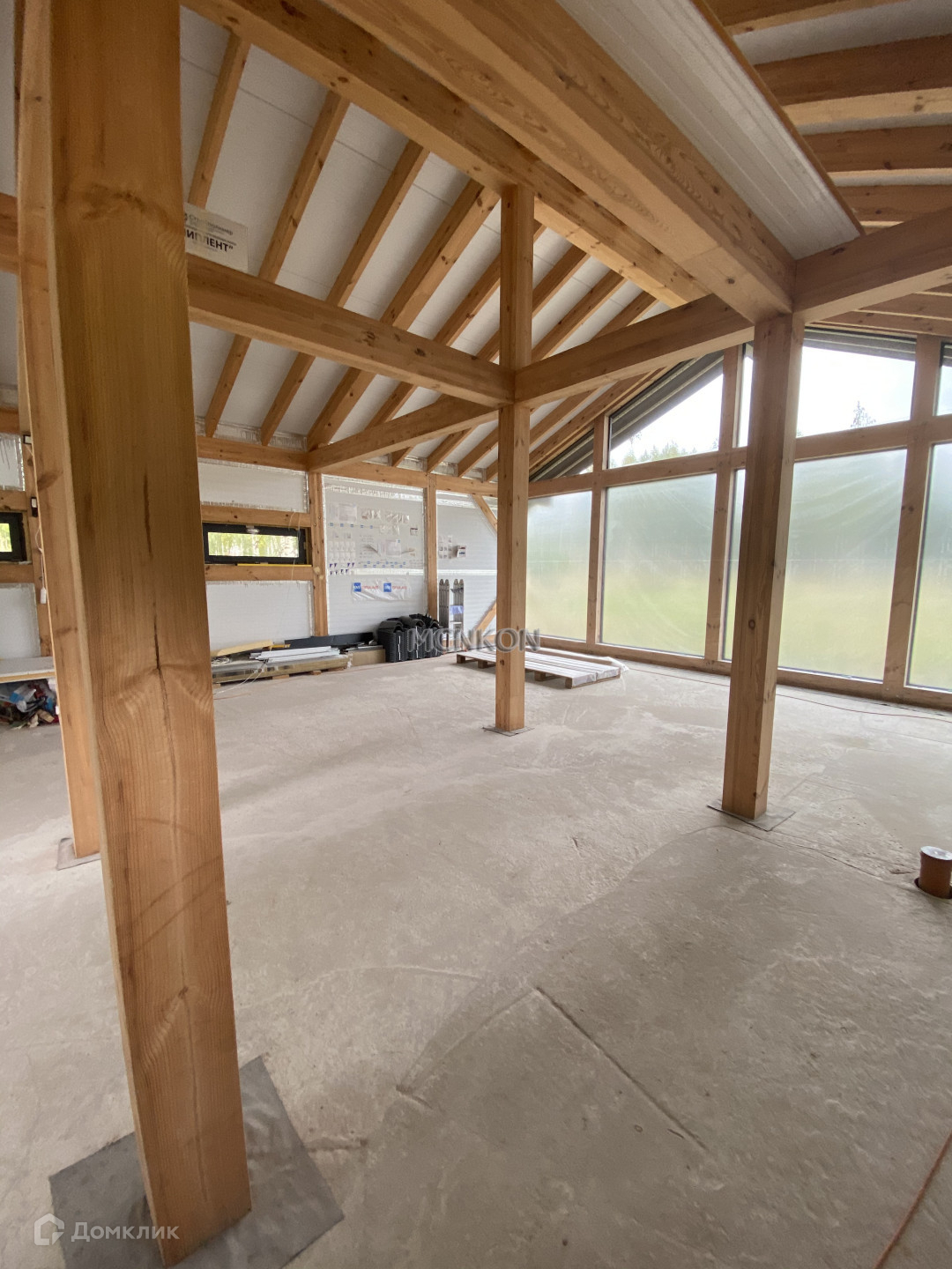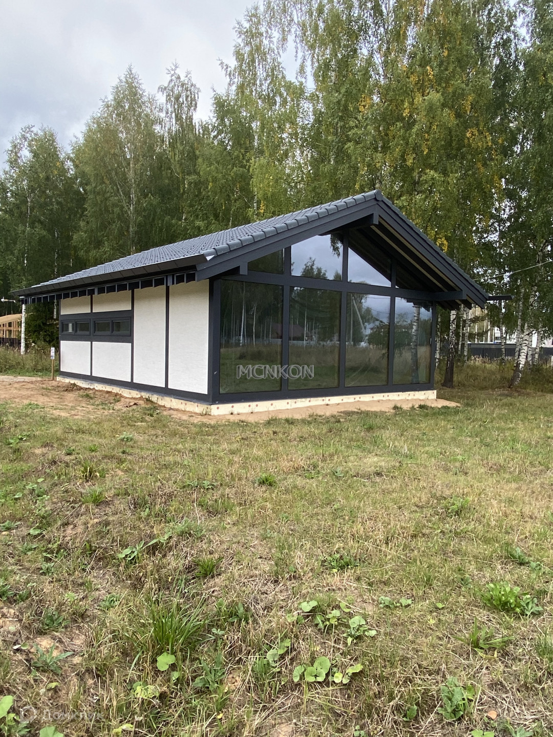 Фундамент - монолитная плита 300 мм. Основа - каркас из клееного бруса, стены- панели, утеплитель PIR Premier. Окна - закаленные стеклопакеты Guardian 62 мм.