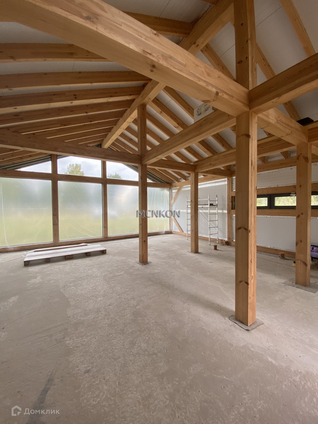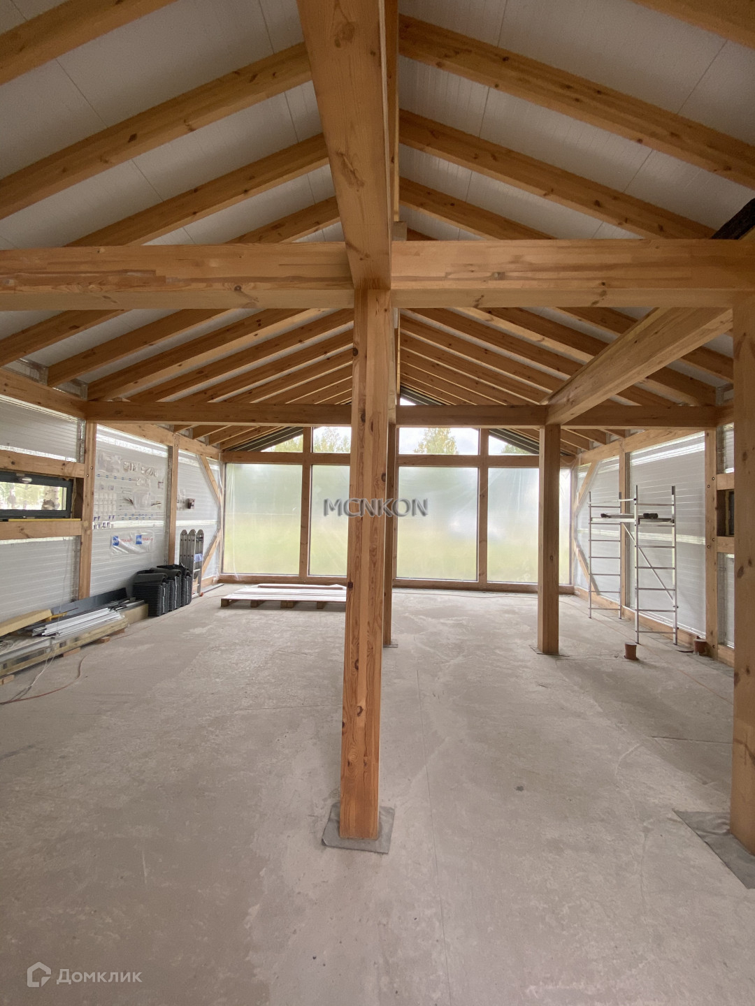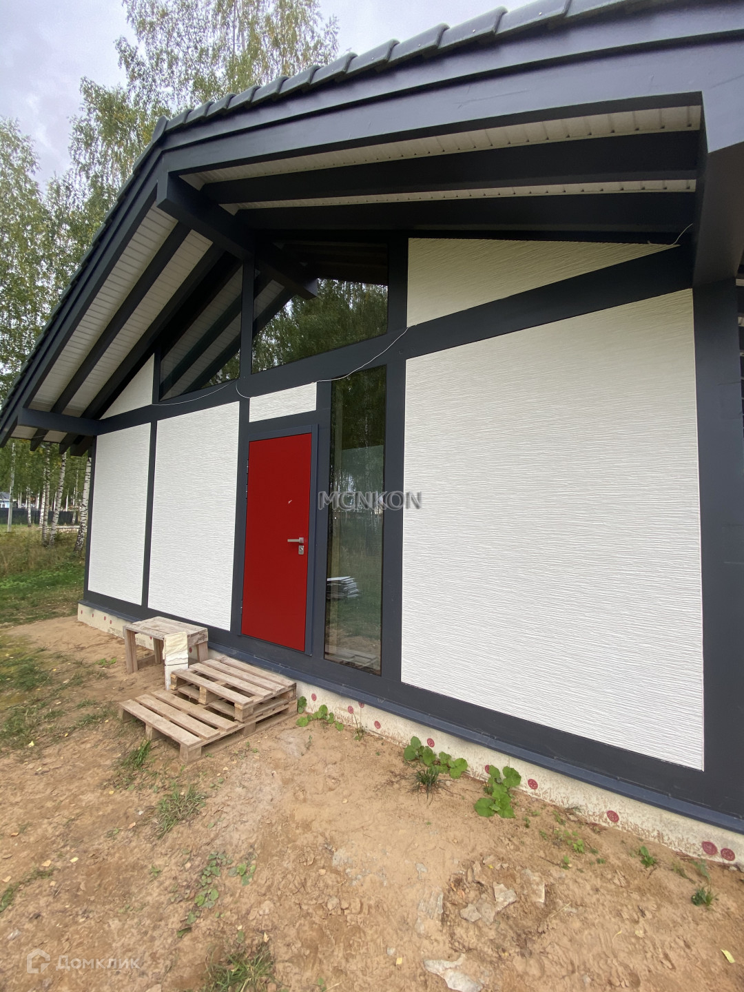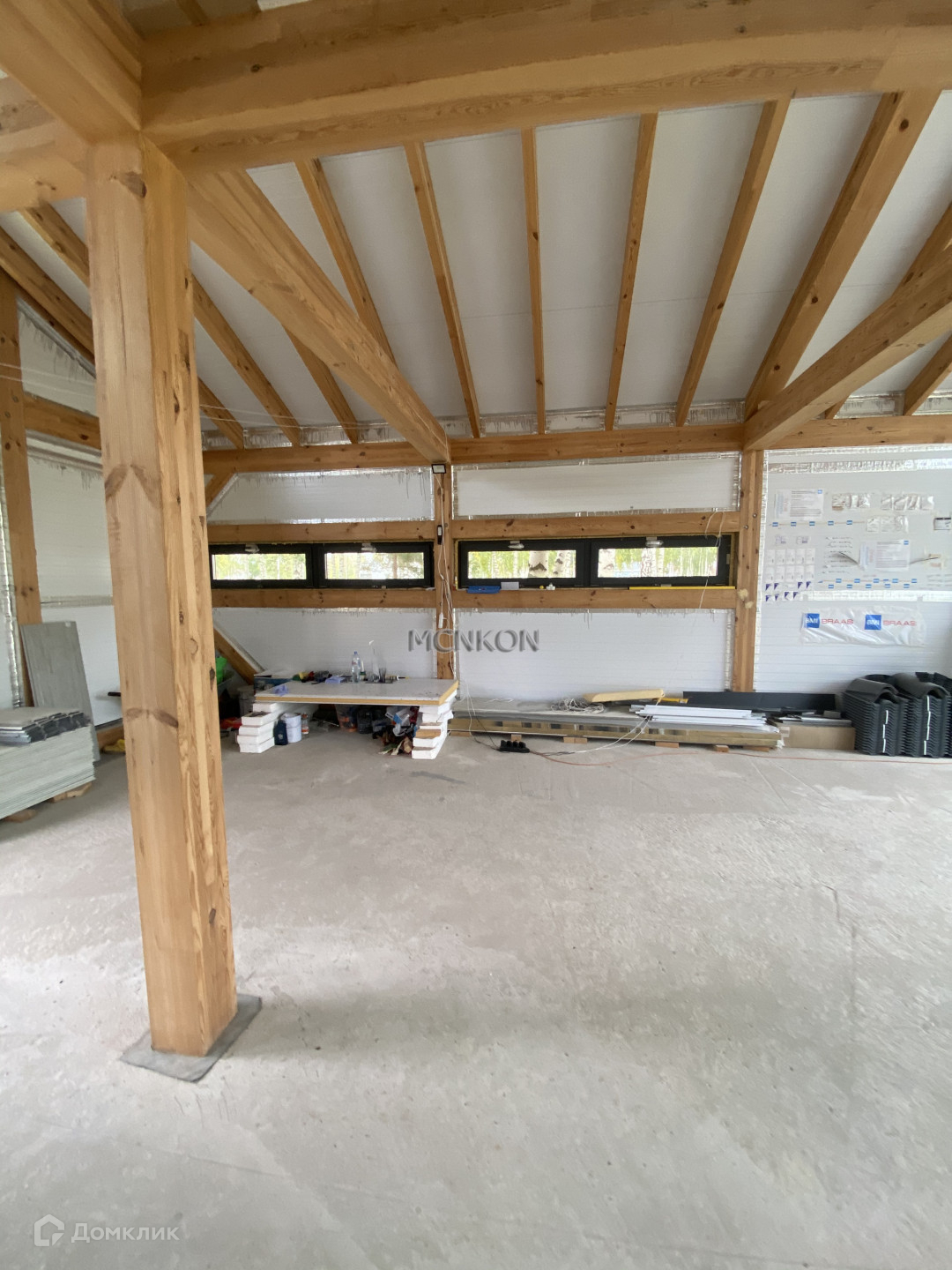 Фундамент - монолитная плита 300 мм. Основа - каркас из клееного бруса, стены- панели, утеплитель PIR Premier. Окна - закаленные стеклопакеты Guardian 62 мм.