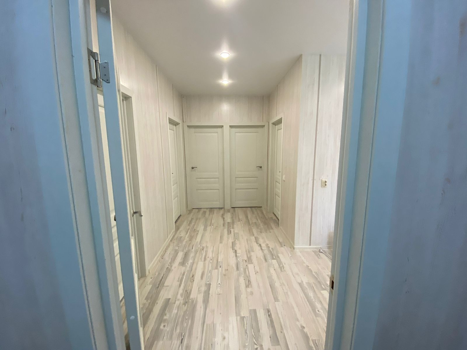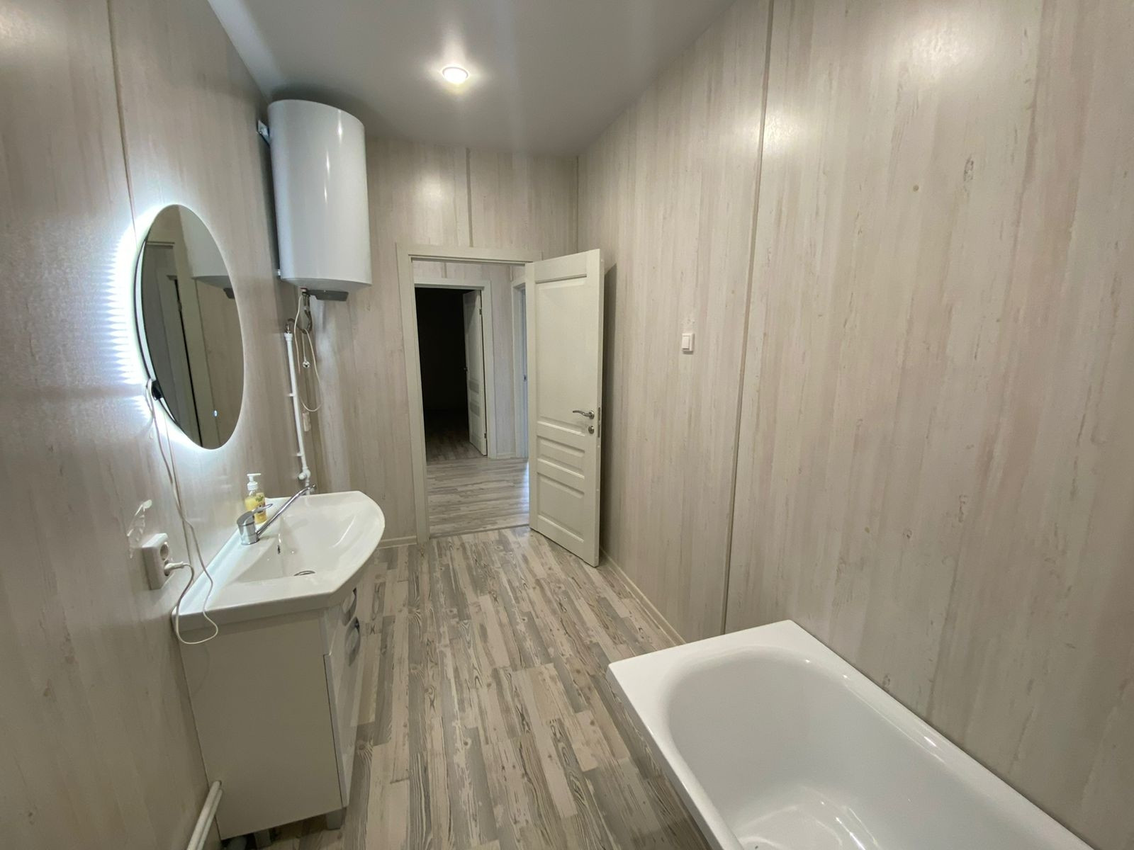 Три комнаты, кухня-гостиная, ванная и просторная прихожая.