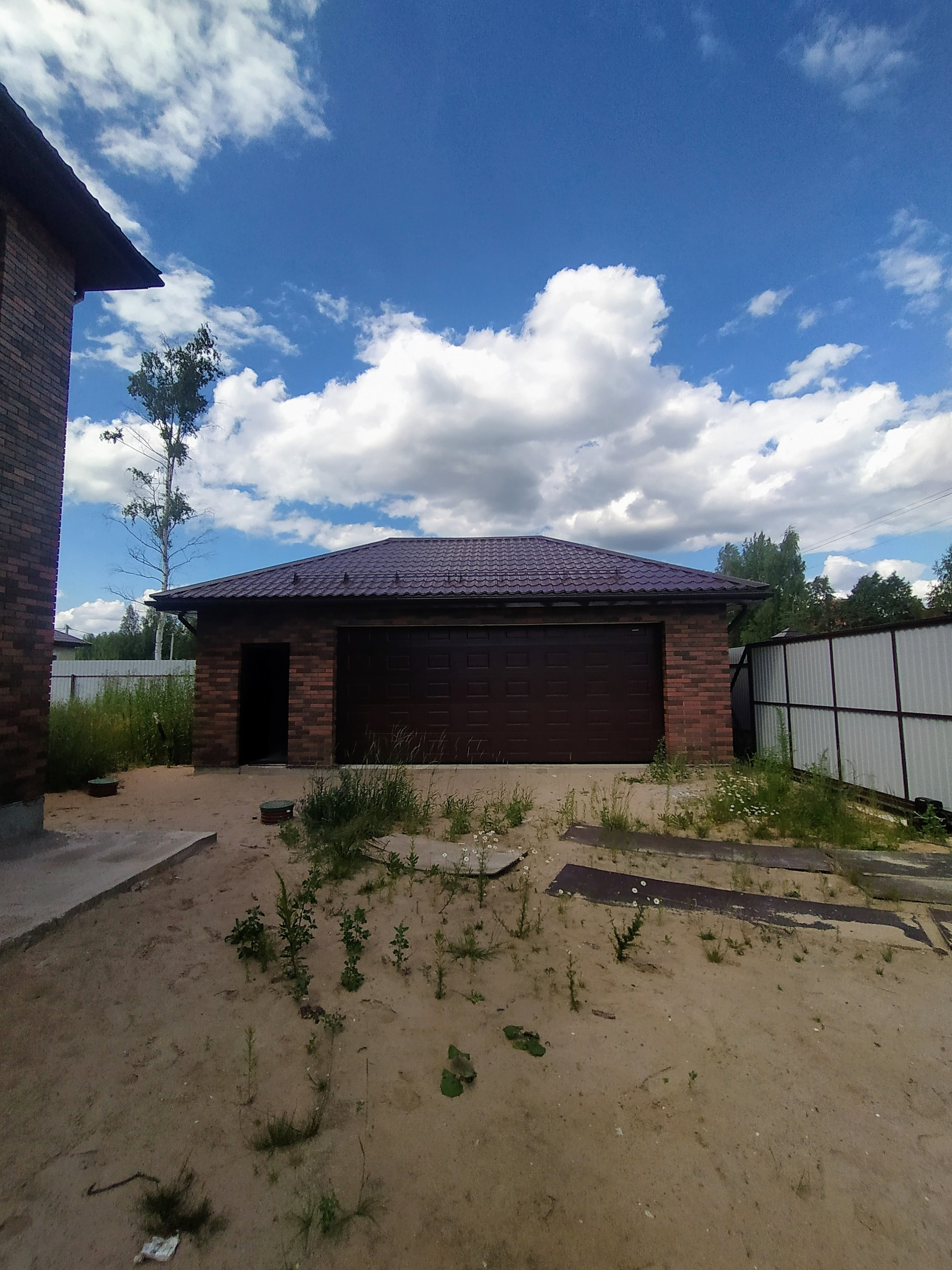 Участок сухой, ровный, прямоугольной правильной формы. Есть гараж на две машины площадью 50 кв.м.