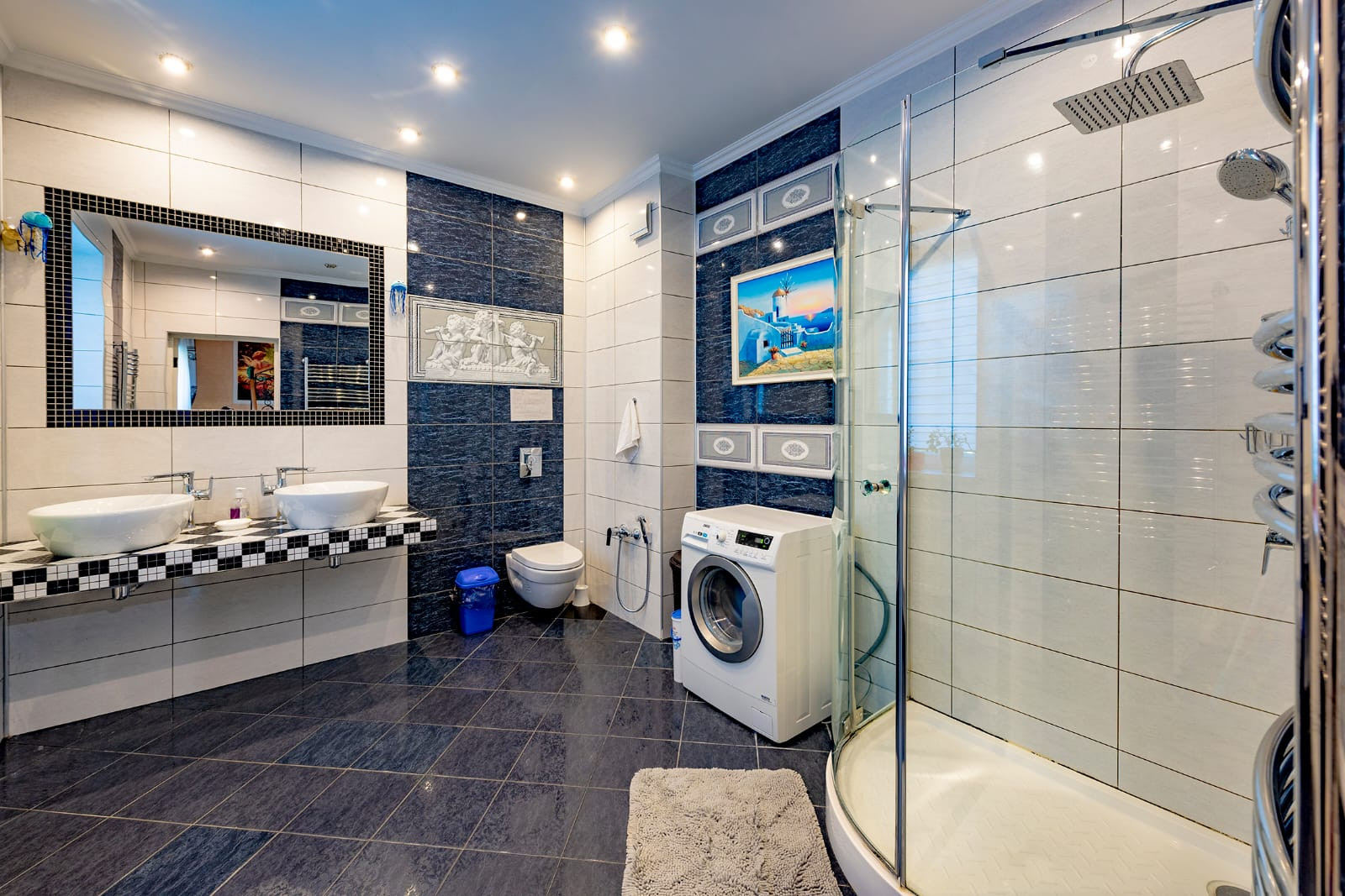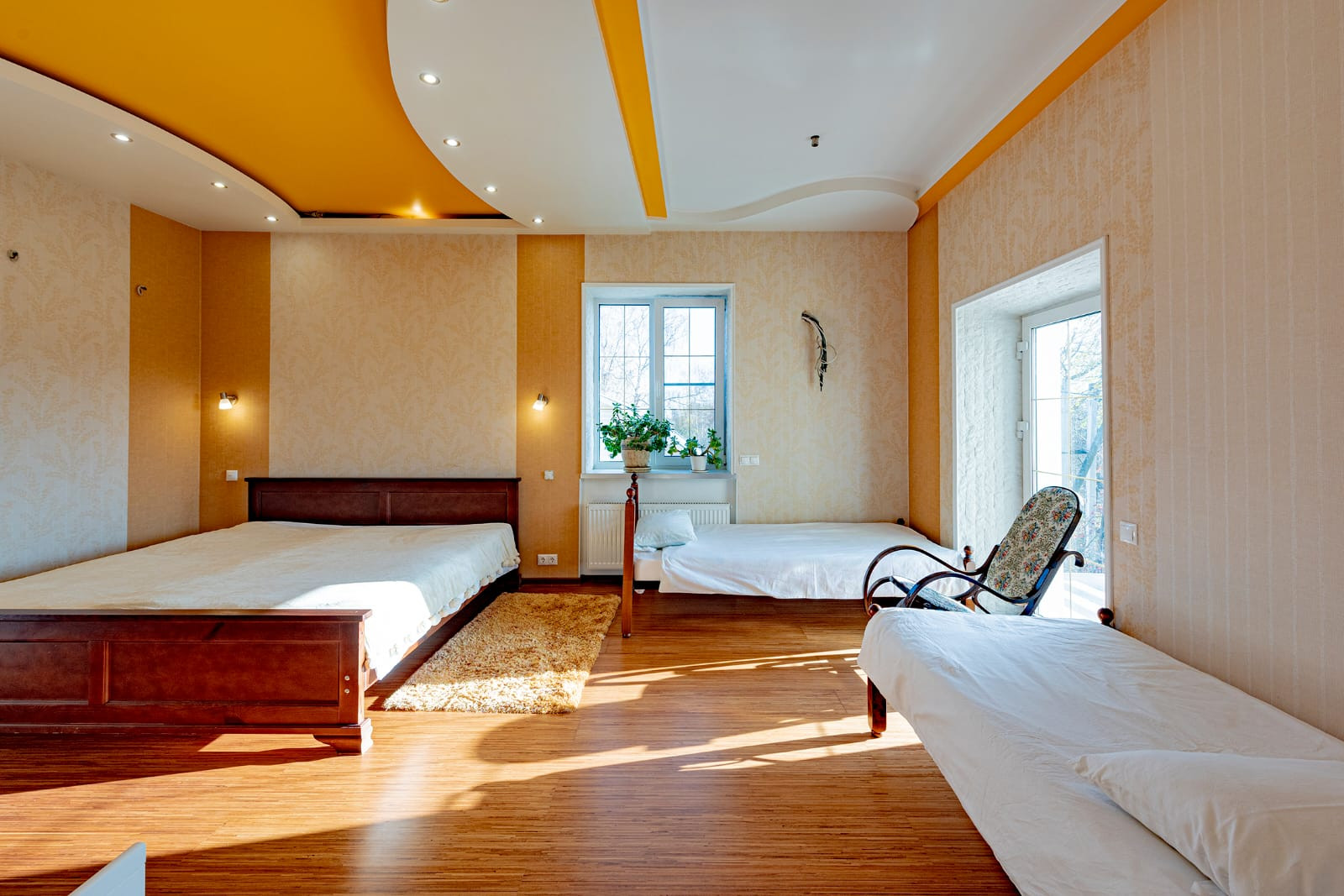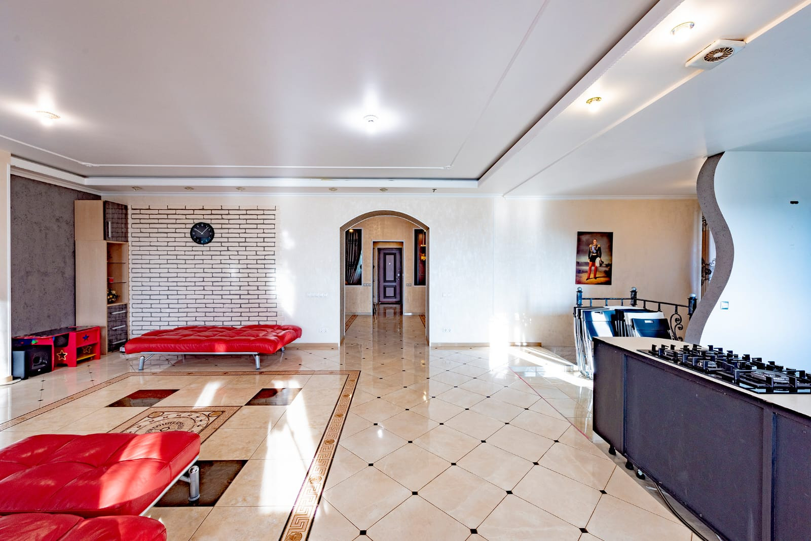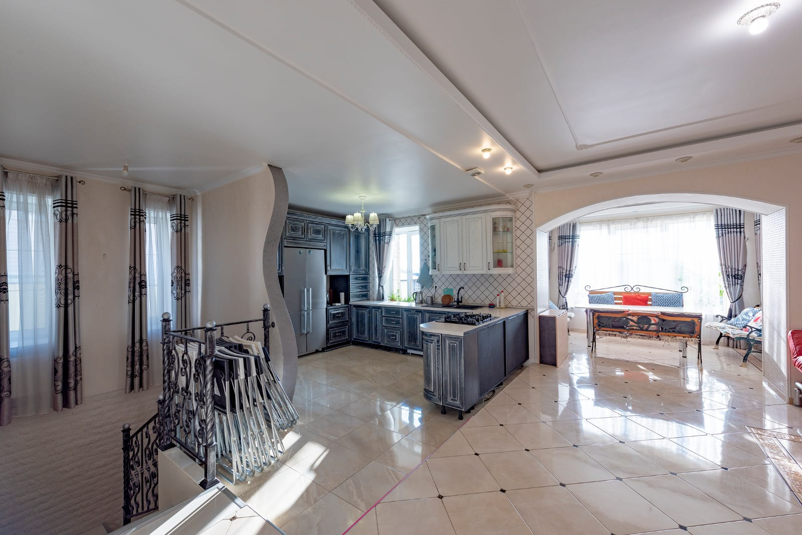 Множество разных комнат, с дизайнерским ремонтом.