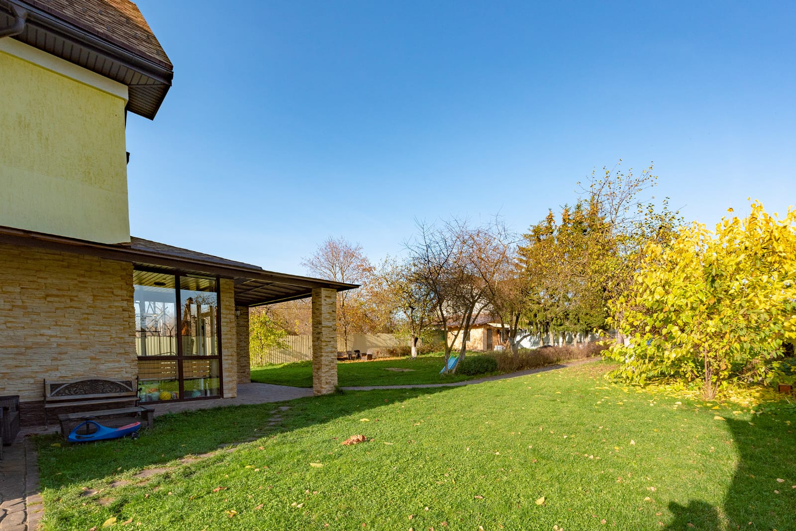 Собственный выход к детской площадке и спуск к водоёму.