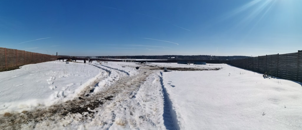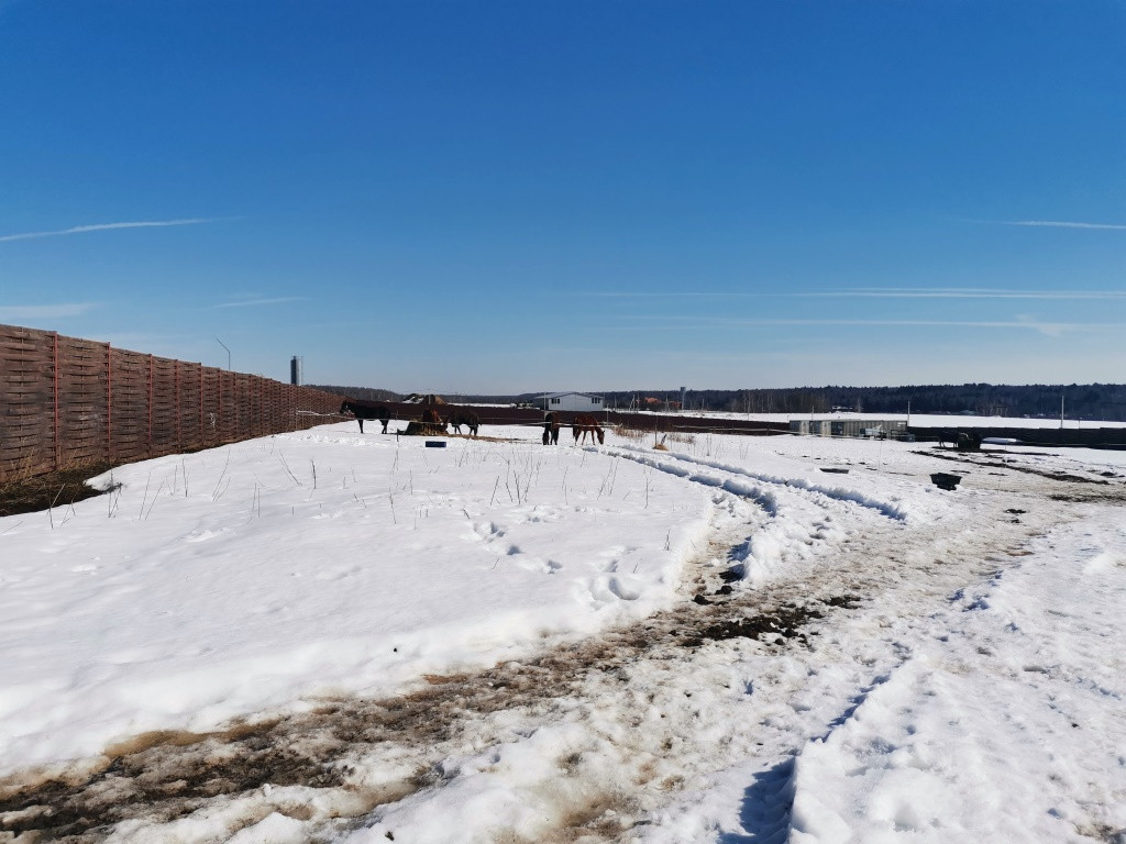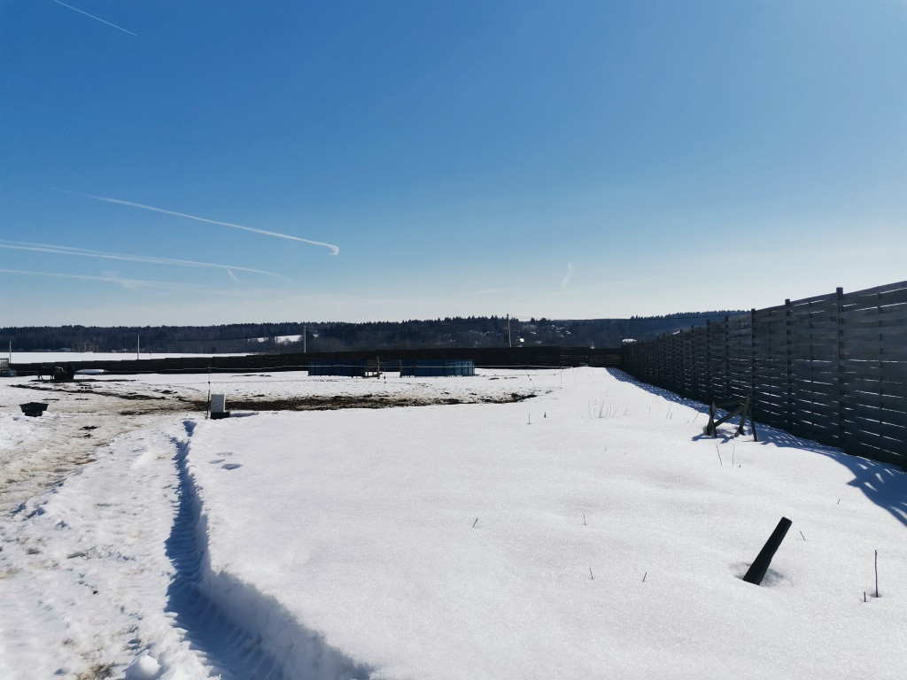 Участок огорожен деревянным забором с двумя воротами одни высотой 5 м., правильной формы, не рельефный. Электричество, вода, дренаж по периметру и внутри участка. Два подъезда, один из которых заасфальтирован. Участок чистый, готов под застройку.