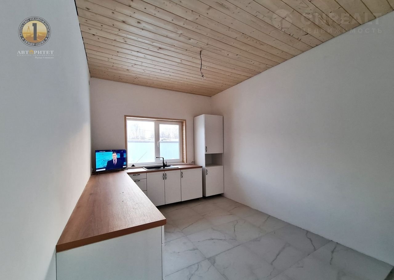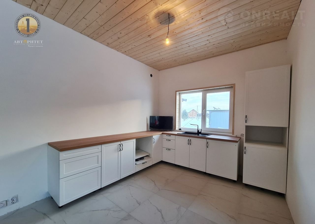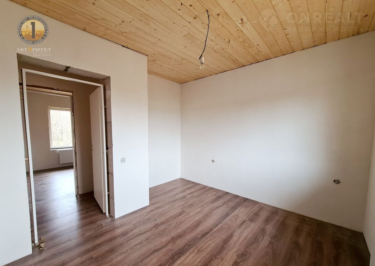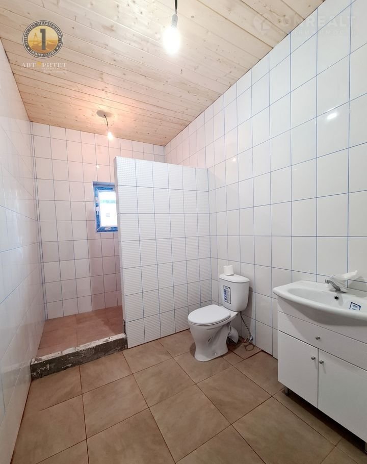 Отделка внутри: стены оштукатурены, зашпаклеваны, ждут вашего дизайнерского творения для завершения полной картины внутреннего пространства, потолок-имитация бруса, пол - кафель в зоне прихожей, кухни, ванной и тех.помещения, в остальных зонах - ламинат.