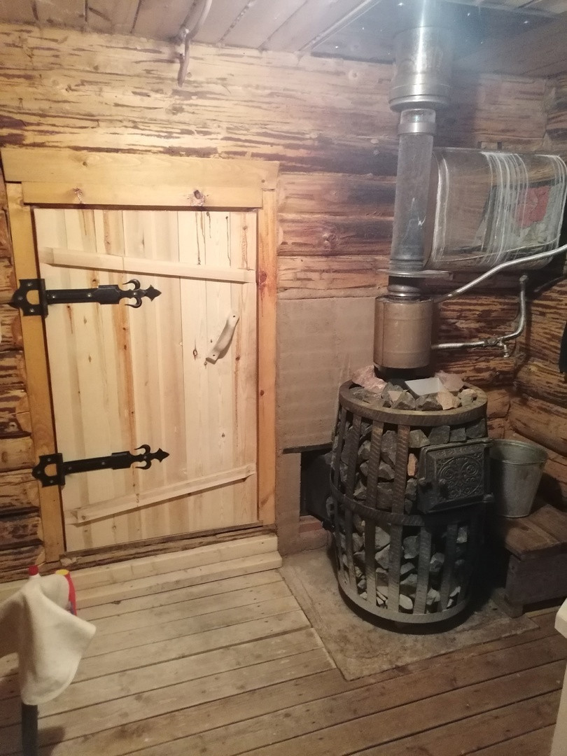 Есть отличная русская баня из бревна с большой верандой для отдыха, обустроена зона барбекю., кольцо, турник, подсобное помещение под инструмент и стройматериалы.