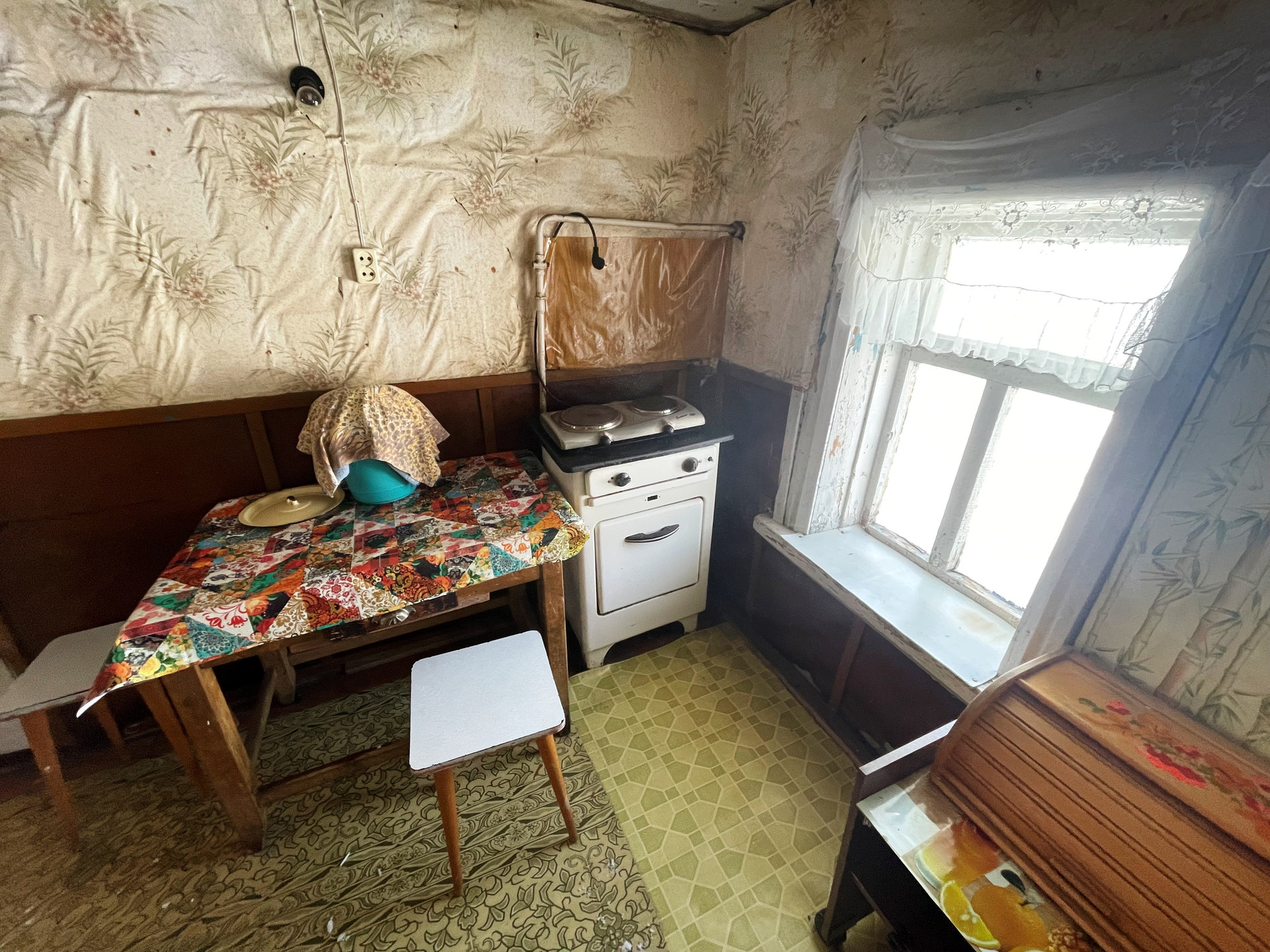 В доме большая комната, кухня, терраса. Электричество в доме, колодец на участке. На участке туалет, старая баня. В доме чисто, уютно и светло!