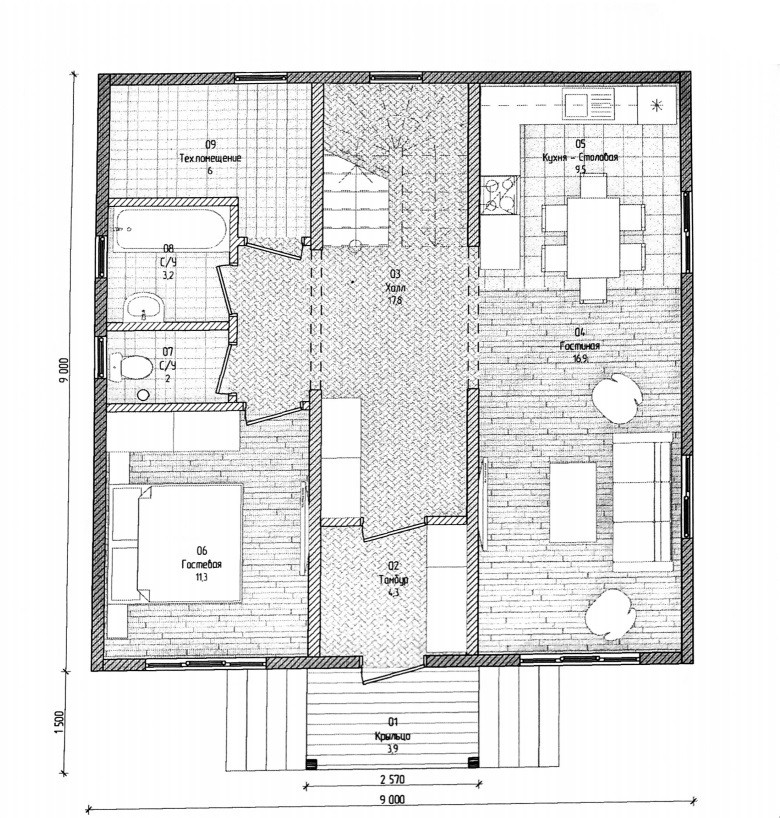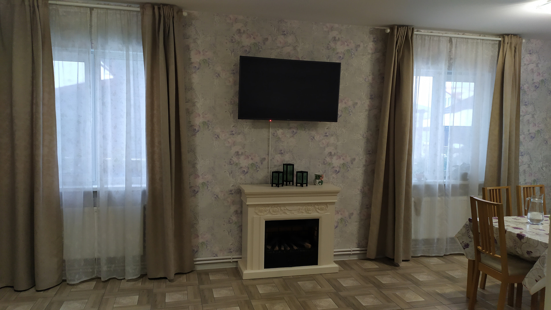 Первый этаж: холл, кухня-гостиная с мебелью и камином, гостевая комната, бойлерная.