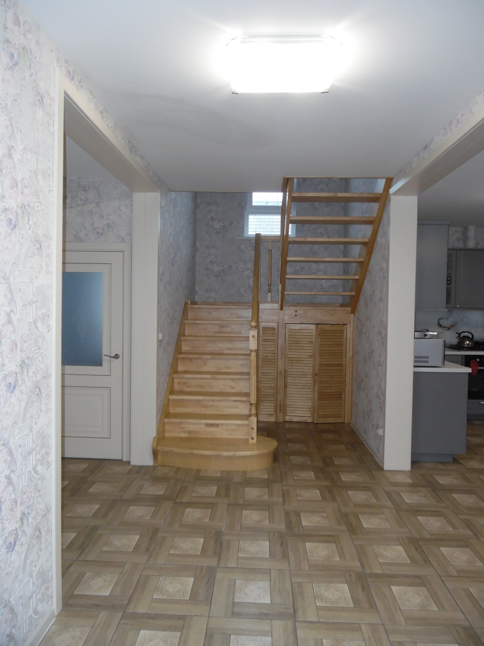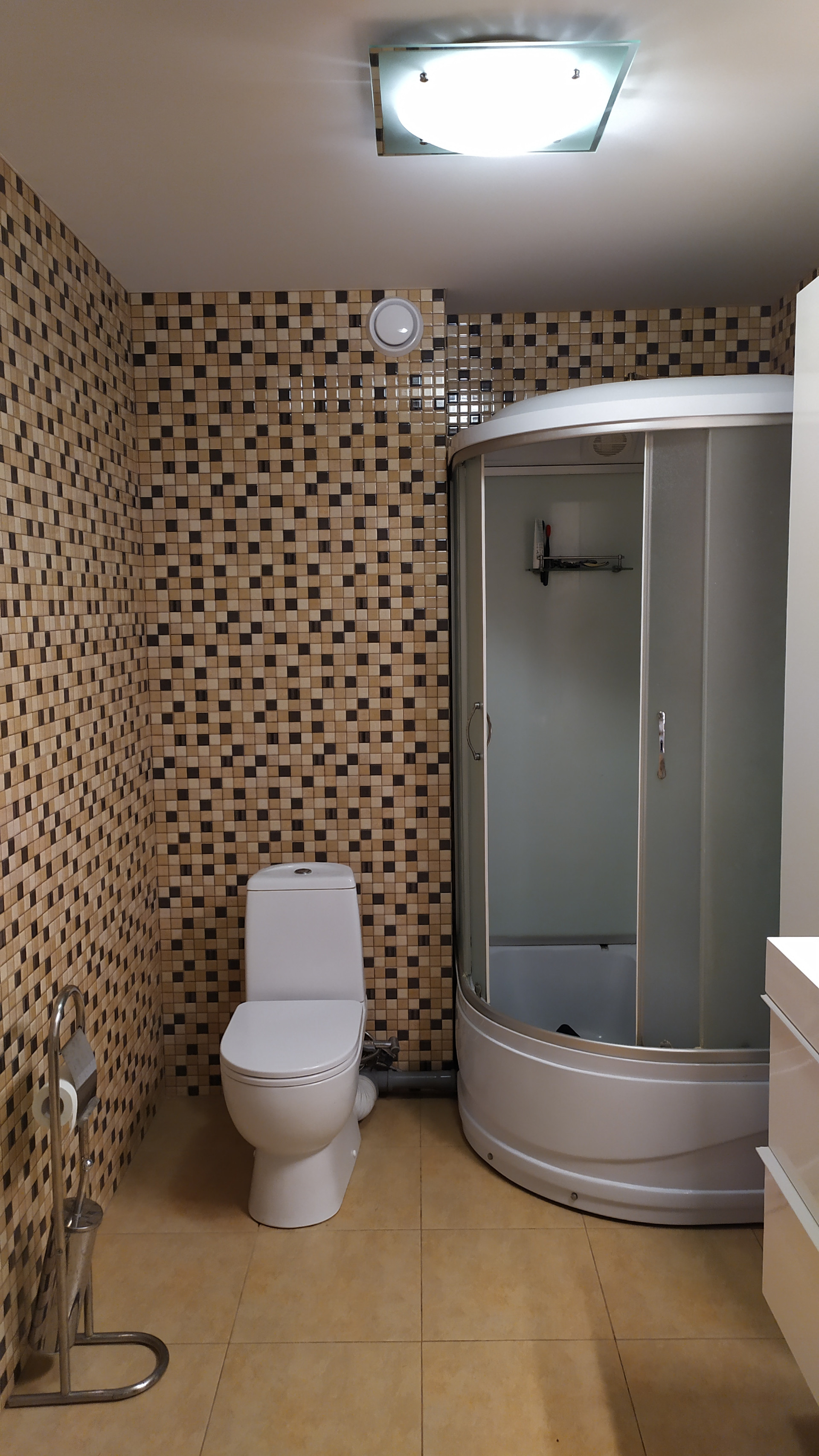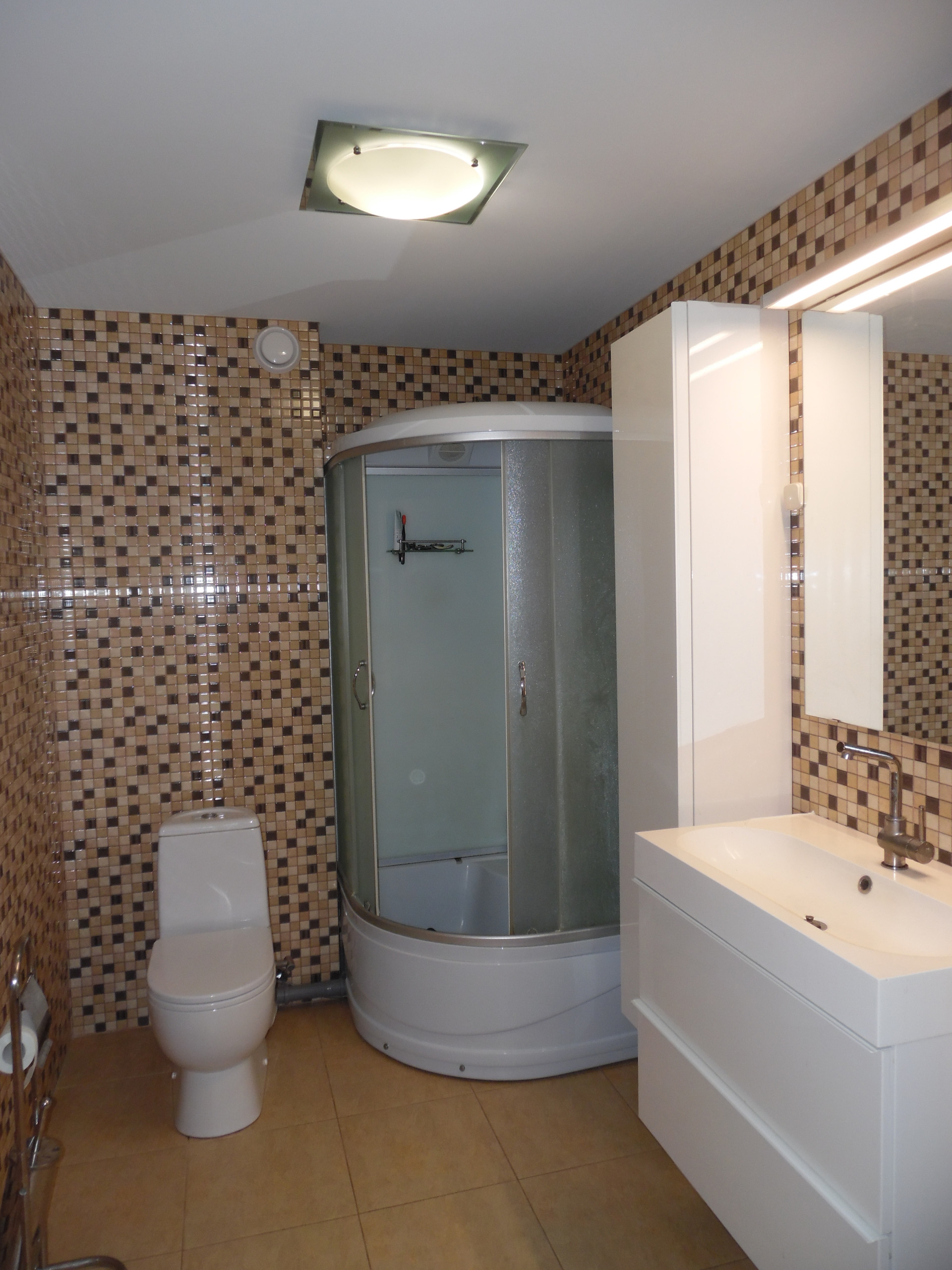 Полы в доме полностью выложены керамогранитом.