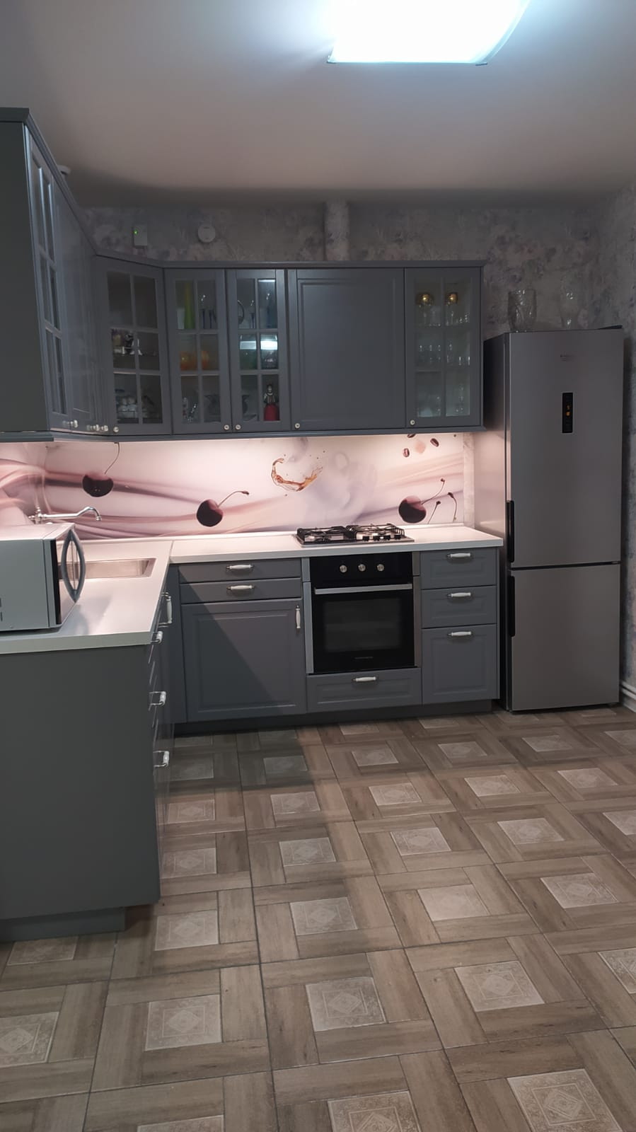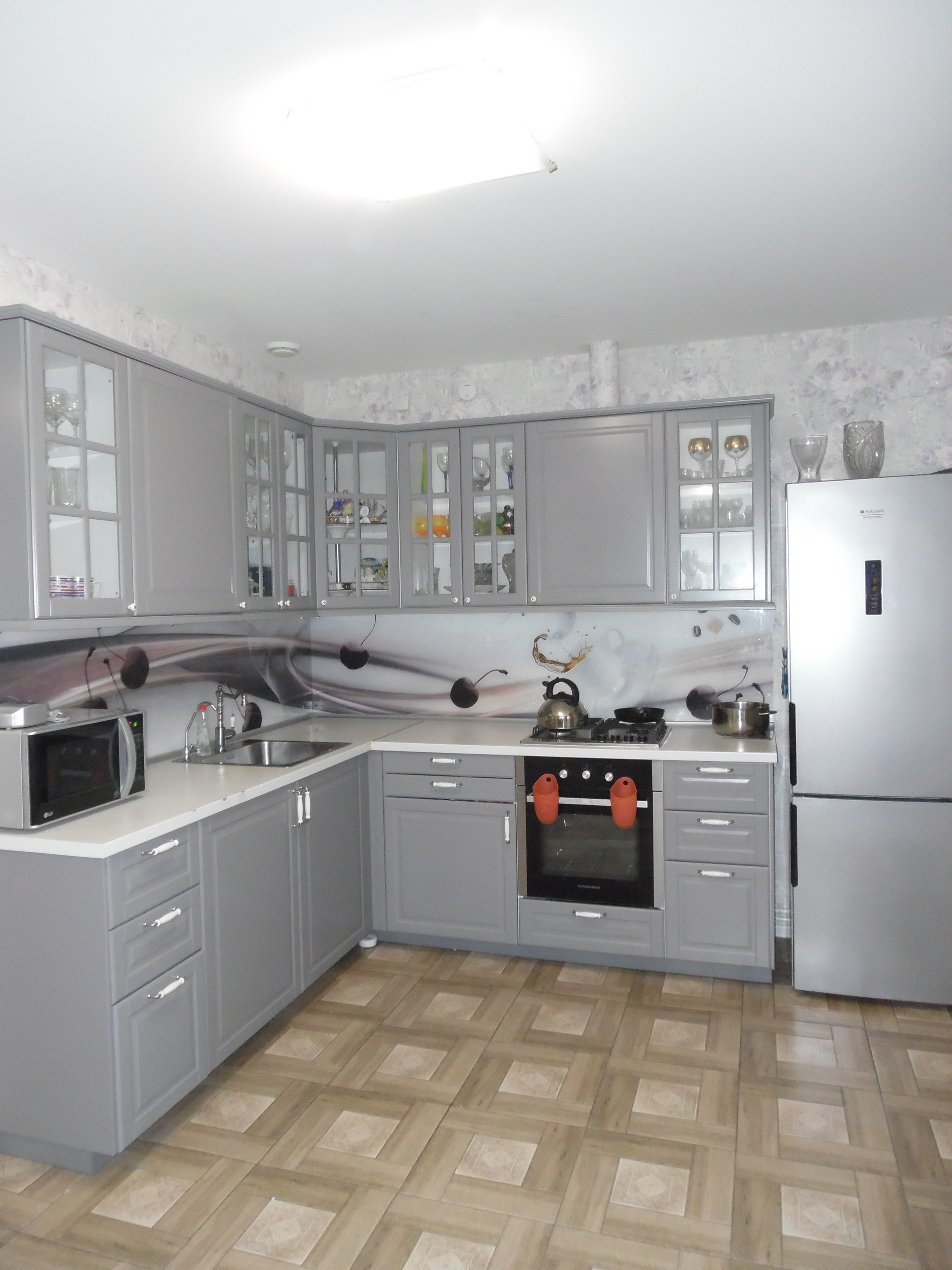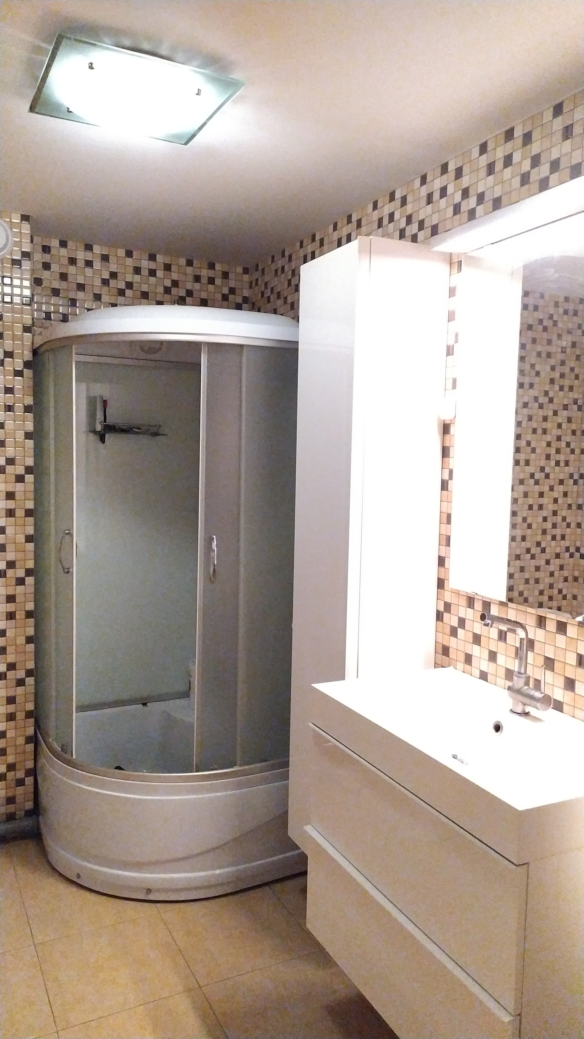 Полы в доме полностью выложены керамогранитом.