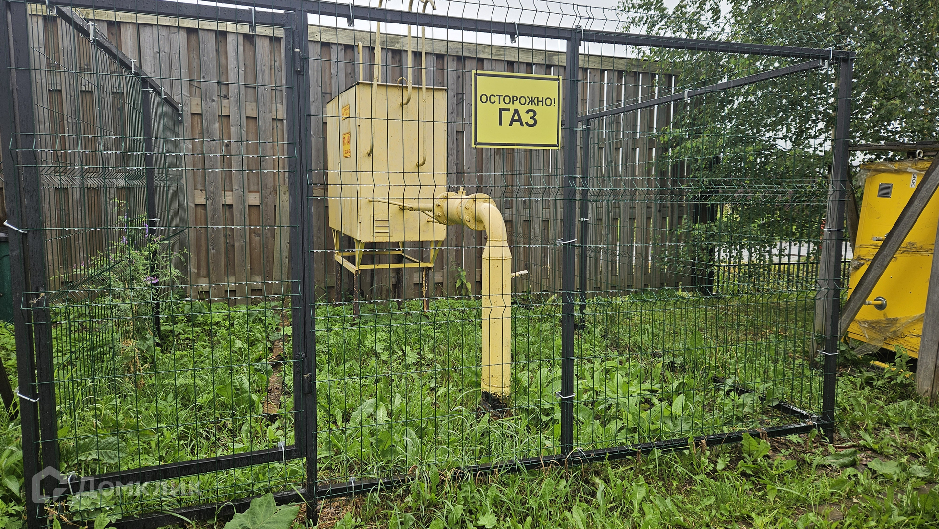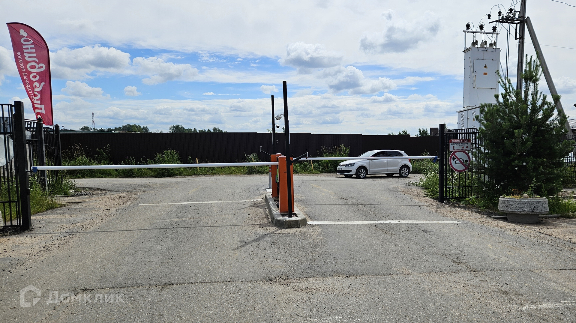 Собственный въезд с КПП и шлагбаумом.