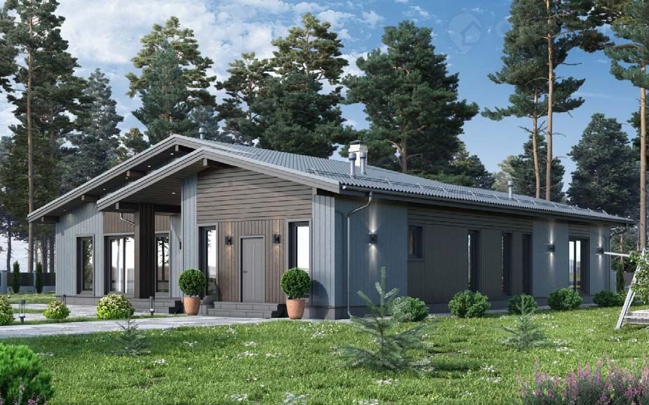 — Финишная отделка – после сборки выполняются работы по внутренней и внешней отделке, включая установку окон, дверей и систем отопления, что придаёт дому завершённый вид.