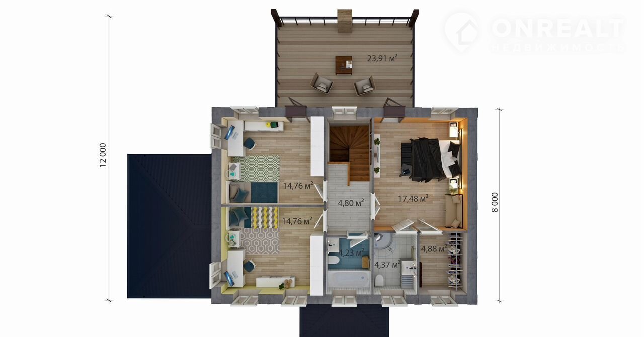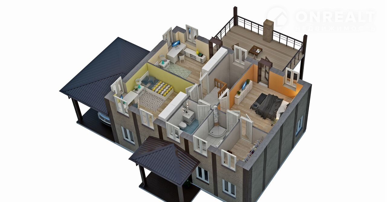 1 эт. - спальня, просторная кухня-гостиная с выходом на террасу 48 м².