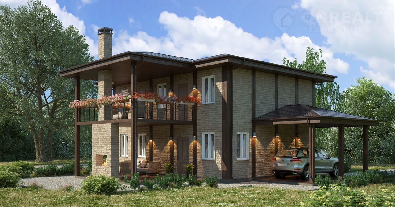На фото — реализованный объект нашей компании. Этот дом не продаётся, но мы можем построить такой же или адаптированный для Вас на участке в КП Усадьба в Вартемягах .
