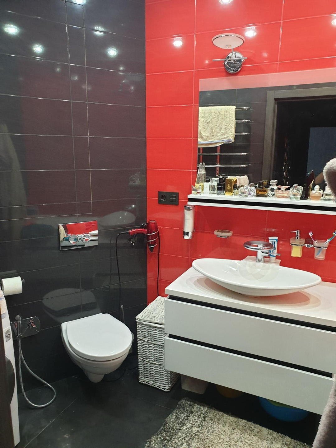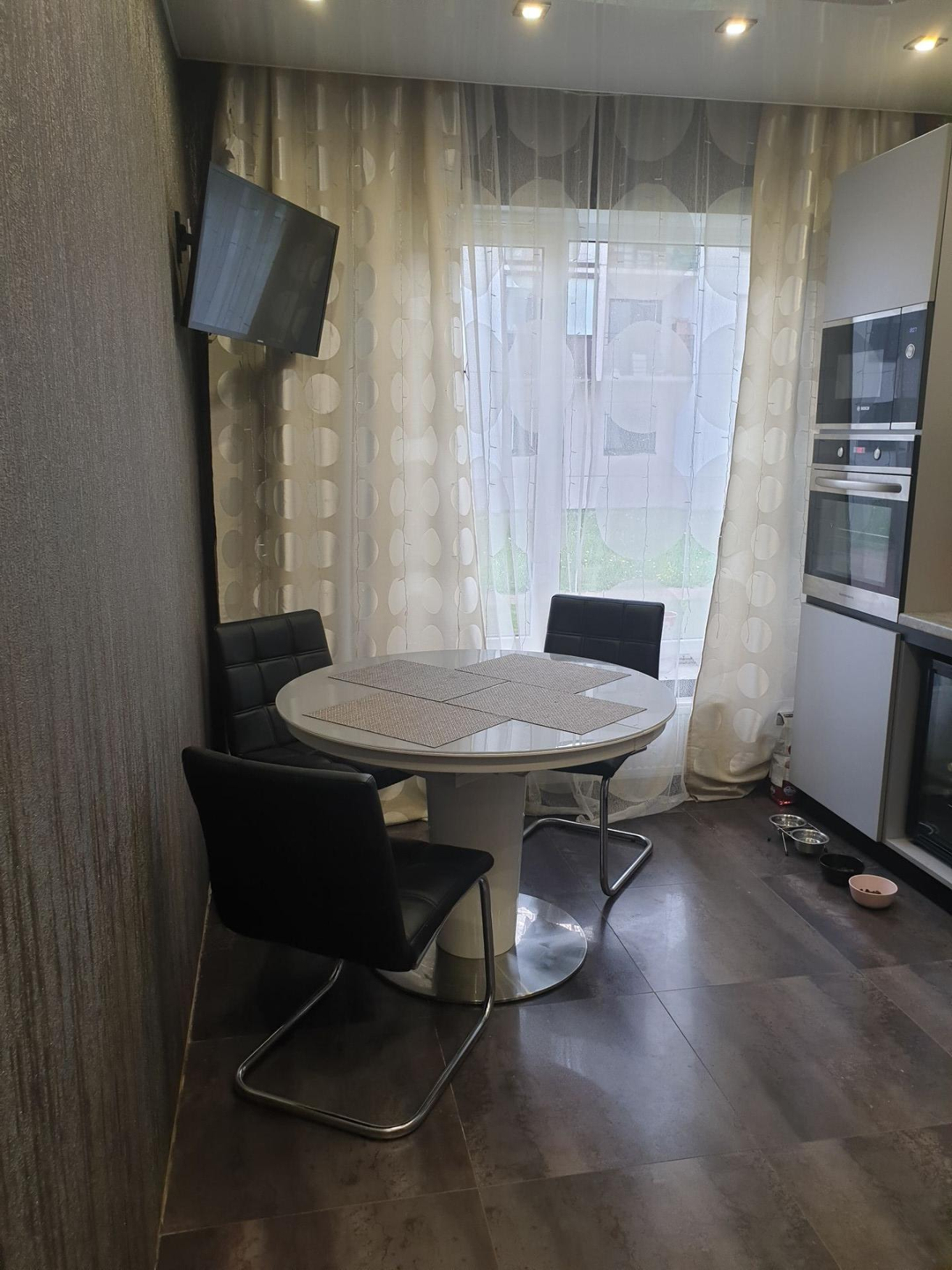 квартира после застройщика. Полностью сделана система элкетрики (18 автоматов, 57 розеток, ОЗУ), система отопления (теплые полы во всех помещениях), отдельно разводка на стриральную, посудомоечную машины (кухня, ванна, батареи все регулируется отдельно -можно перекрывать и при этом пользоваться водой). Газовый котел (Протерм двух контурный). Натяжные потолки во всех квартире. Лоджия застеклена (панорамное стекло, окна Veka); теплый пол, выведена розетка + освещение.