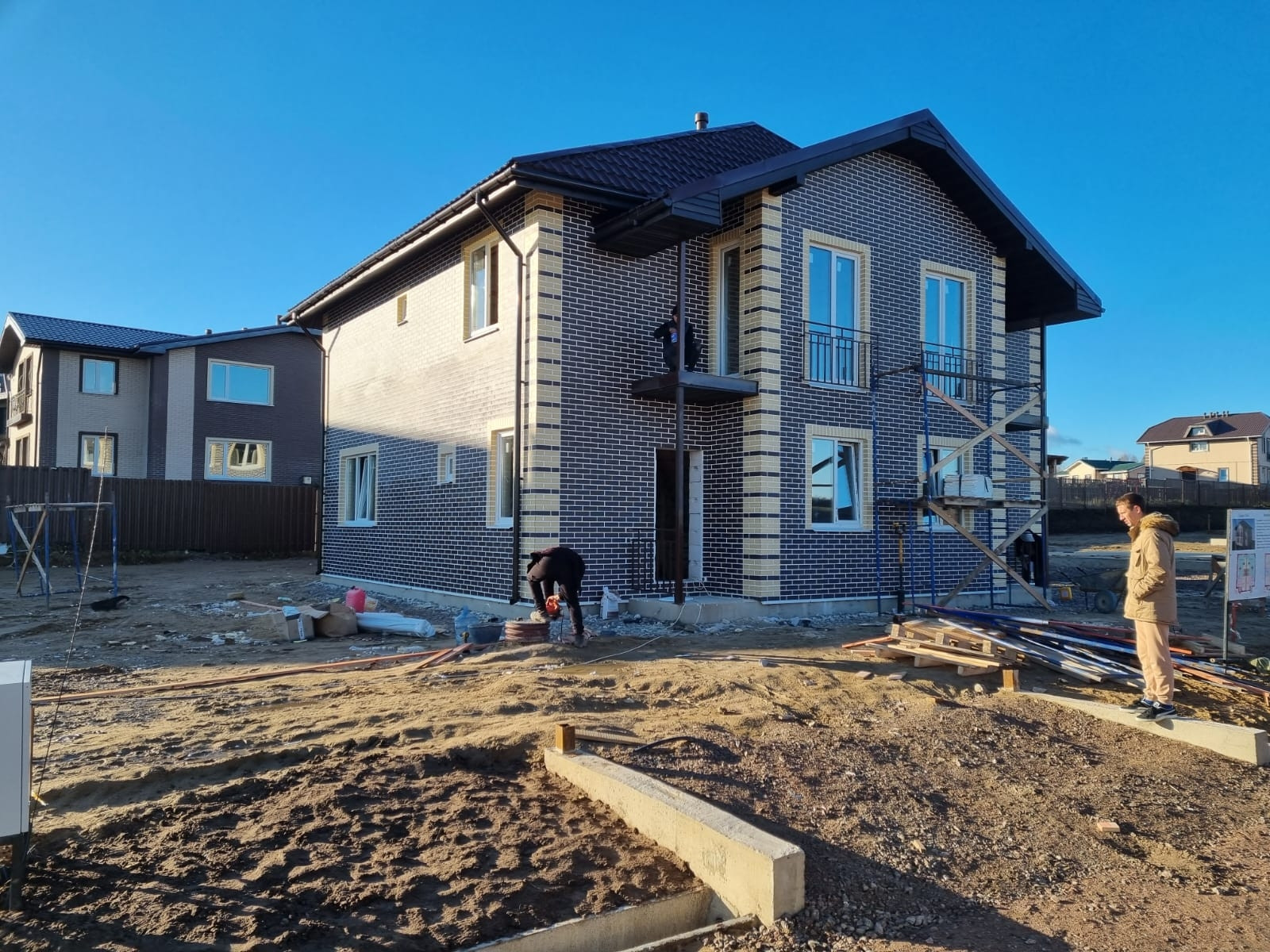 Строительные материалы: фундамент монолитная железобетонная плита, стены газоблок с утеплением, наружная отделка клинкером.