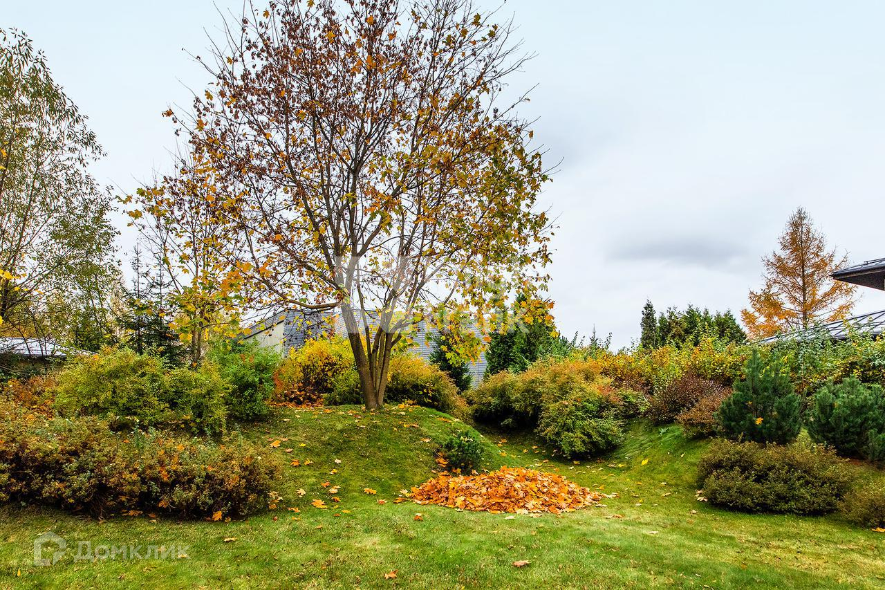 На участке выполнен ландшафтный дизайн.
